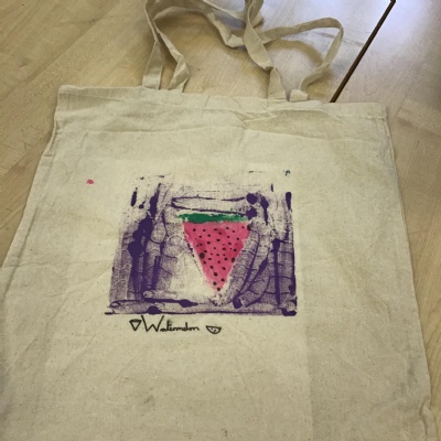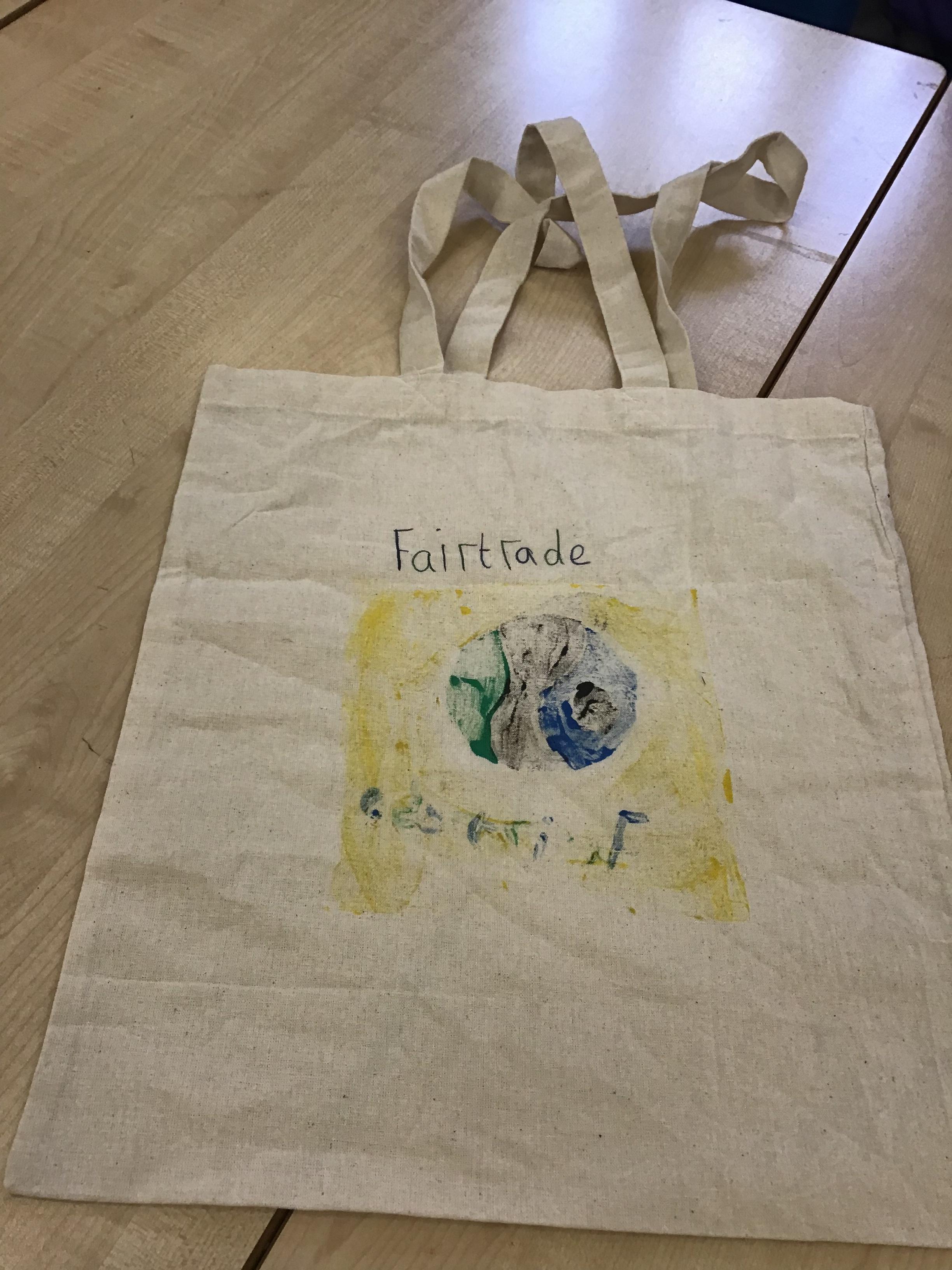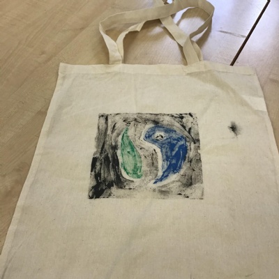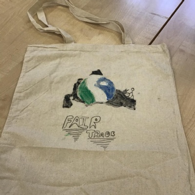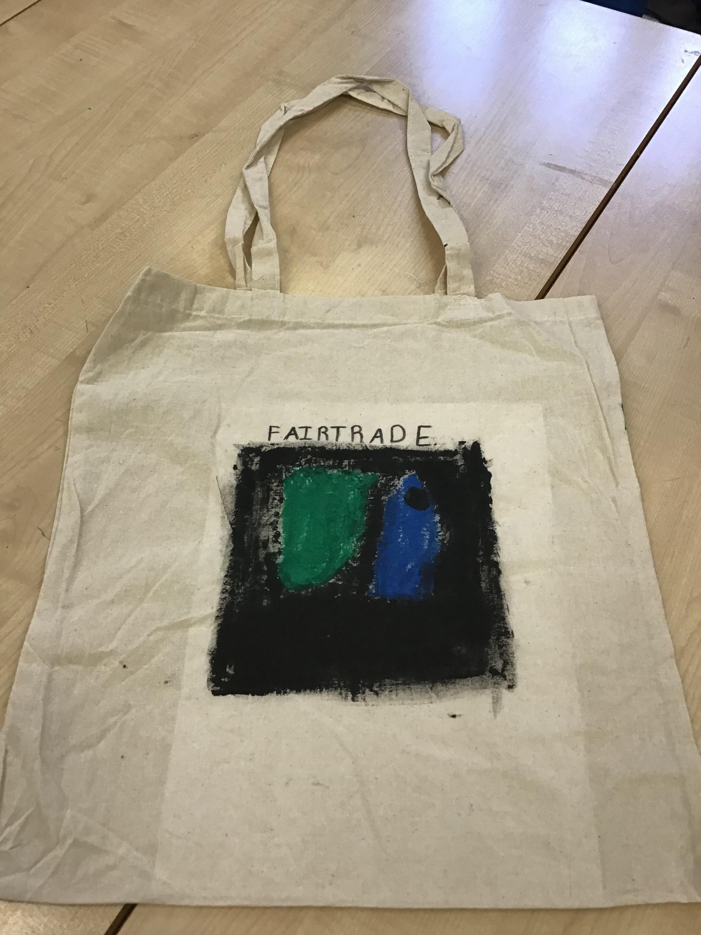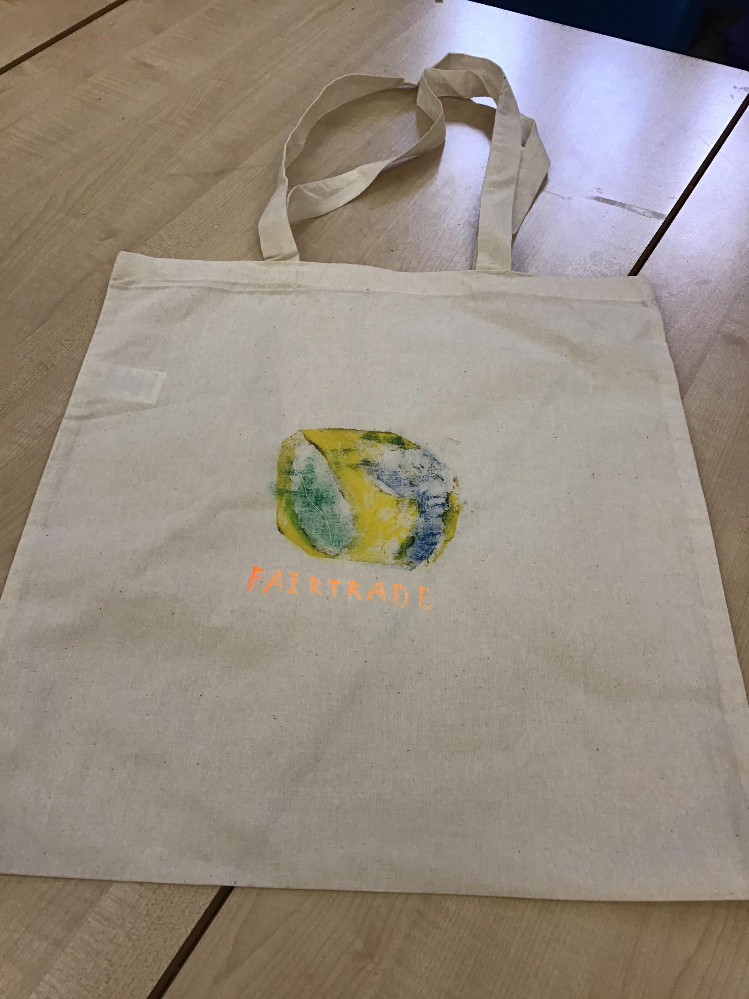 In art we have been learning how to print before printing our very own tote bags to help promote Fair trade. We had to consider design, colour, mirror images before we started. As you can see our ideas are quite effective. It was a lot trickier than we thought because you needed patience and precision.