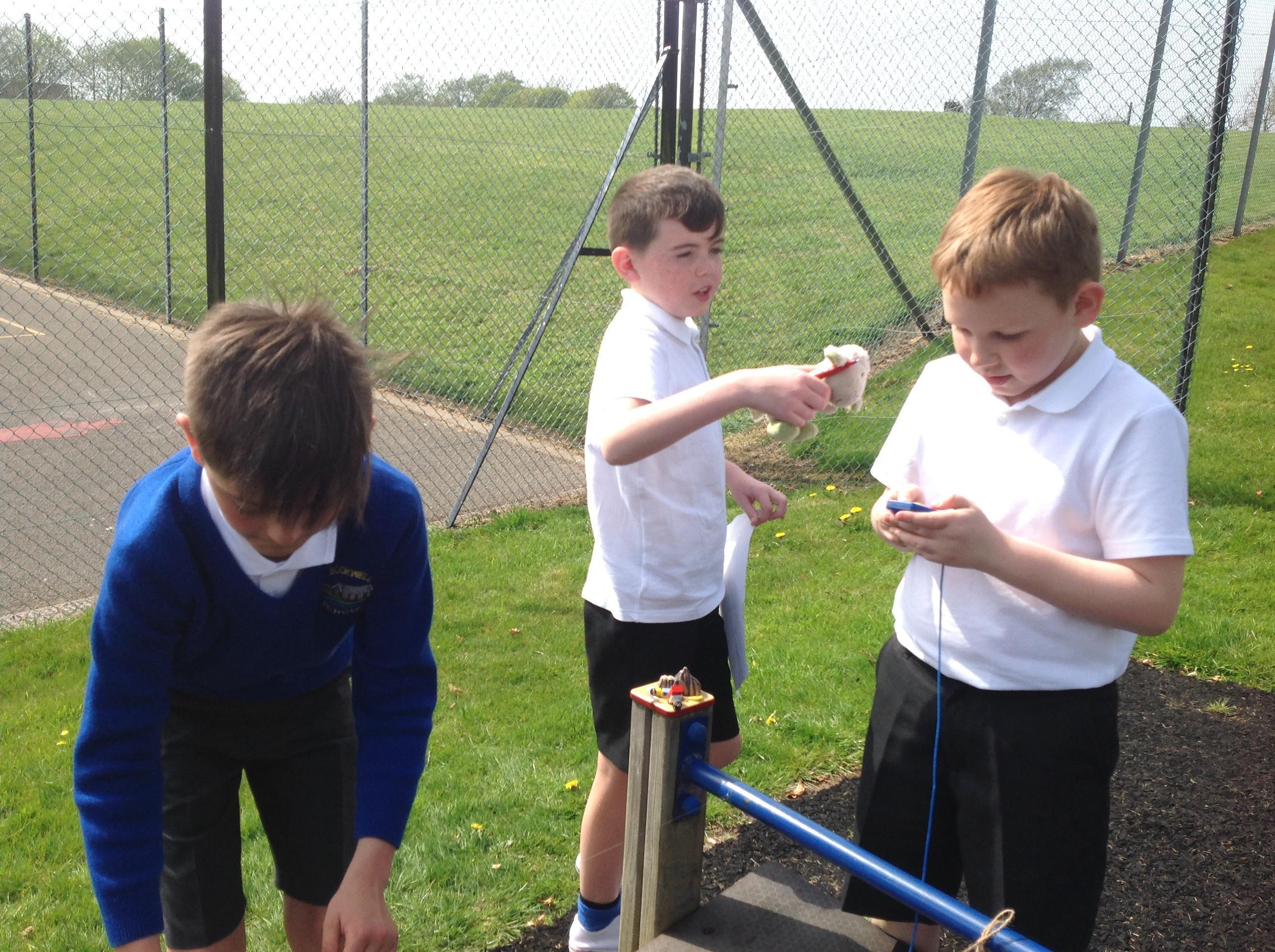 On the 18th April, as part of Science day, we enjoyed investigating zip wires. Our first task was to design a carriage to get our passenger down safely before investigating what makes zip lines faster. In the end we decided to investigate the material the line would be made from and decided the material with the most friction would cause the carriage to travel slower compared to the wire which would have least friction. We decided least friction wouldn’t necessarily be the best material as zip lines need to keep passengers safe too.