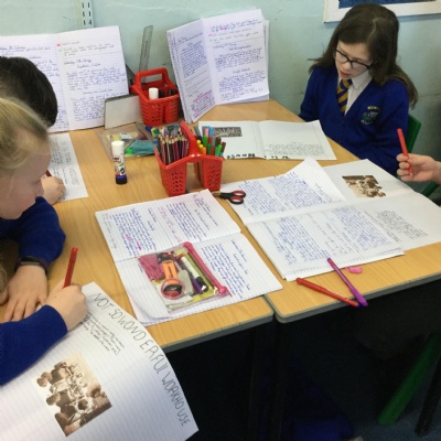 We enjoyed a trip to the Beacon and records office to discover more about world war 1. We used a variety of historical sources like a census, baptism record (which had a mistake) and newspapers to find out about local war hero Abraham Acton who was awarded the Victoria Cross for his bravery. Children were also encouraged to do their bit for their country by sending eggs to wounded soldiers, collecting moss, wool and conkers. We ended the day by making some poppies which will be included in the Beacons war memorial art installation.