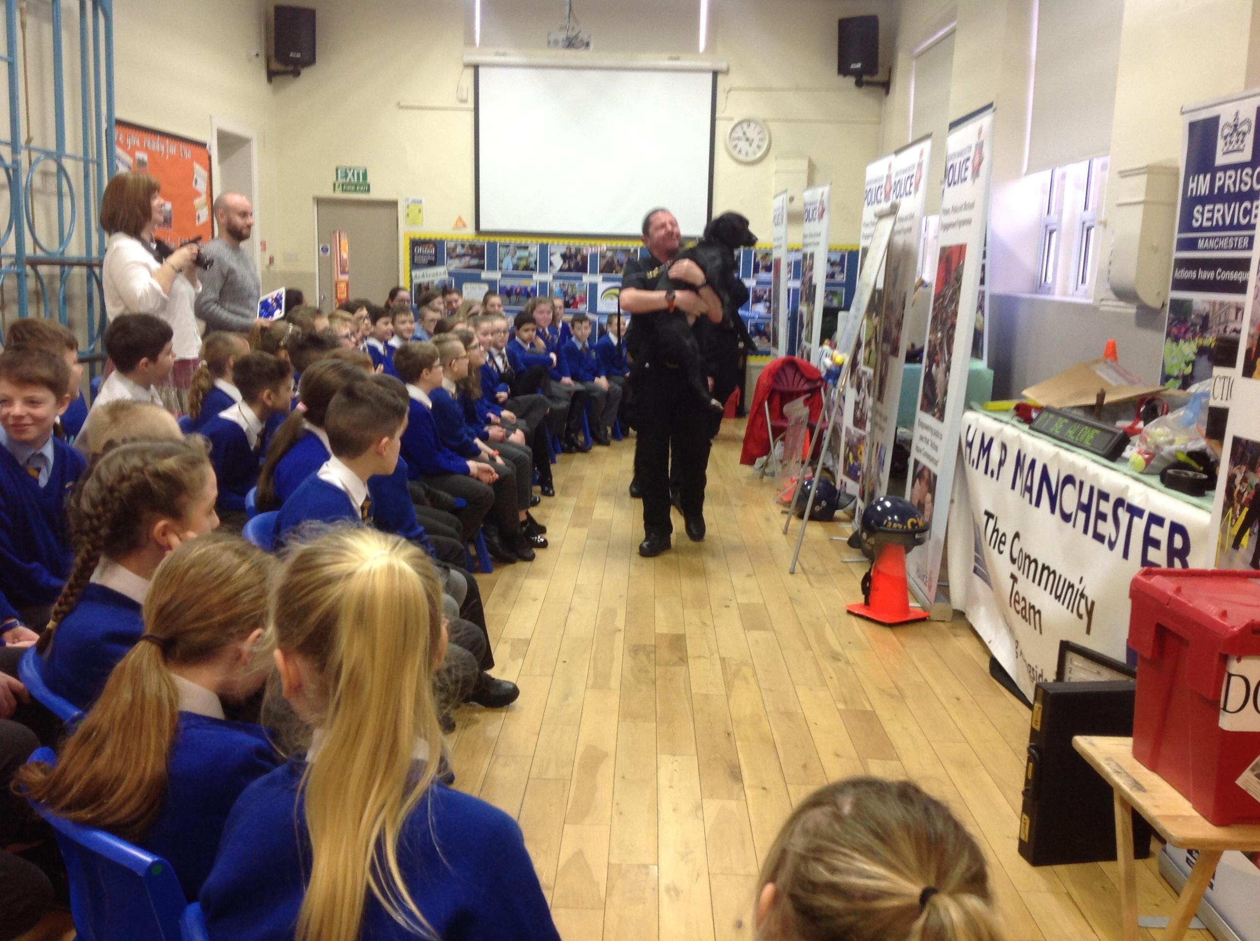 We had a fascinating visit from Greater Manchester Prison Service and Cumbria Police on Wednesday 16th January. We learnt how and when we should call the emergency numbers and what numbers we should contact them on. Did you know the non-emergency contact for the police is 101? We also learnt what important things we should look for if we find ourselves in a situation where we might have to give a description to the police. Bullying and drugs were two topic we talked about and the consequences these things could have before meeting the police dogs trained to sniff out drugs and people on the run. We were shocked to hear some of the conditions of prison such as only getting three sets of underwear for a week which someone else has worn before you. The biggest thing we learnt are that we are accountable for our own actions.