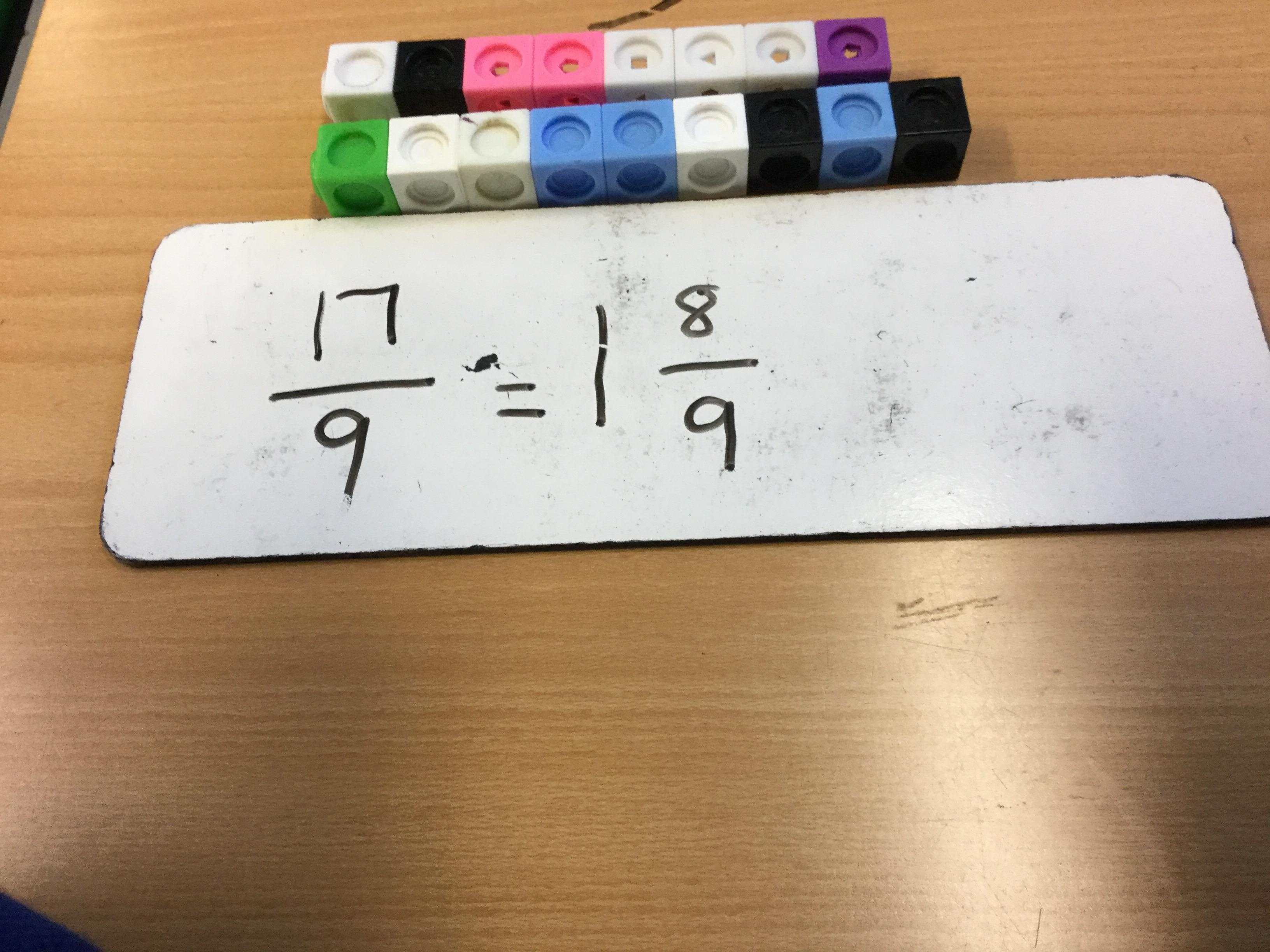 We have been learning to recognise equivalent fractions and also converting mixed number to improper fractions. We were shocked when Mrs Fawcett told us to write an improper fraction on the table for our friends to convert.