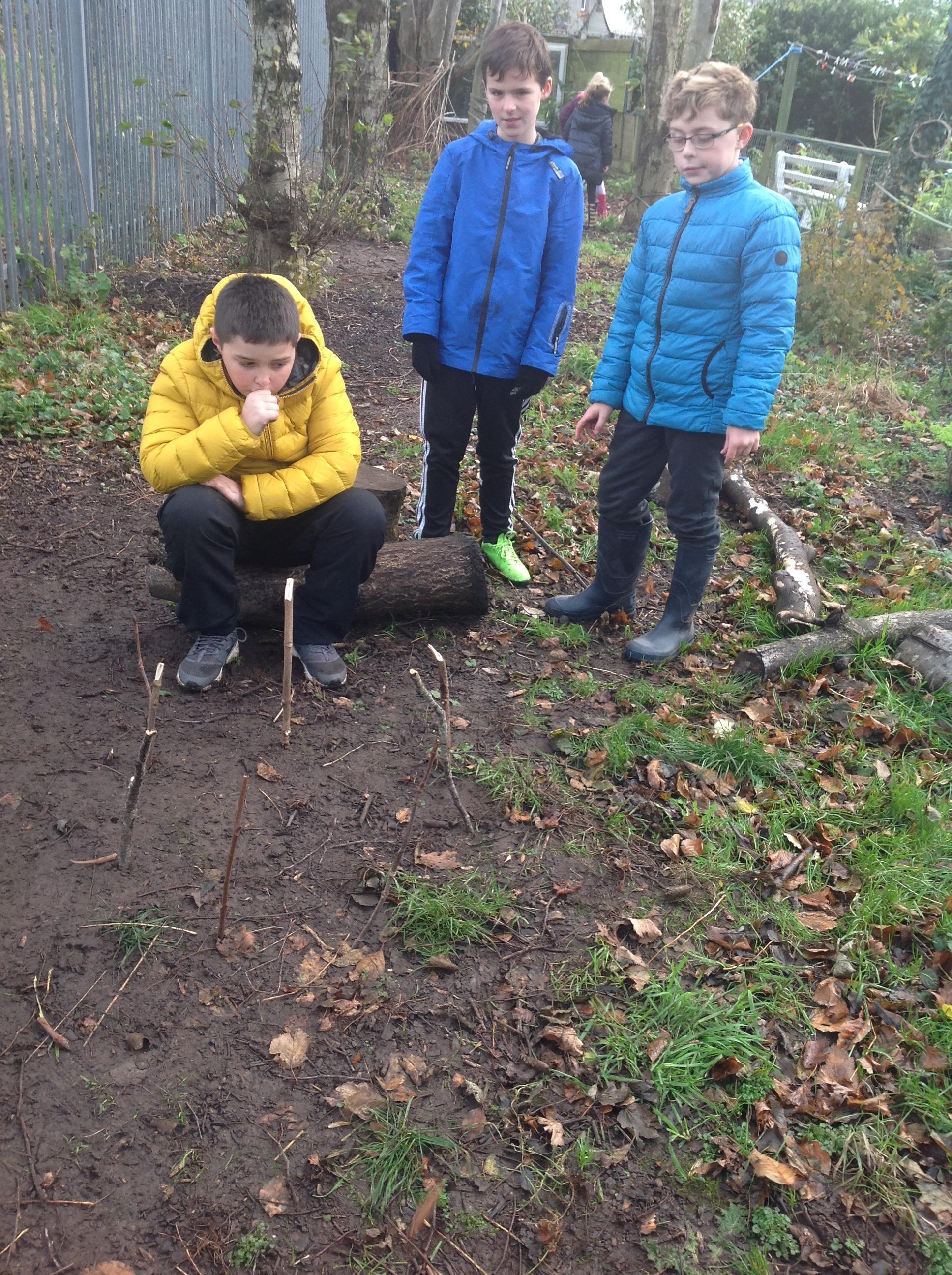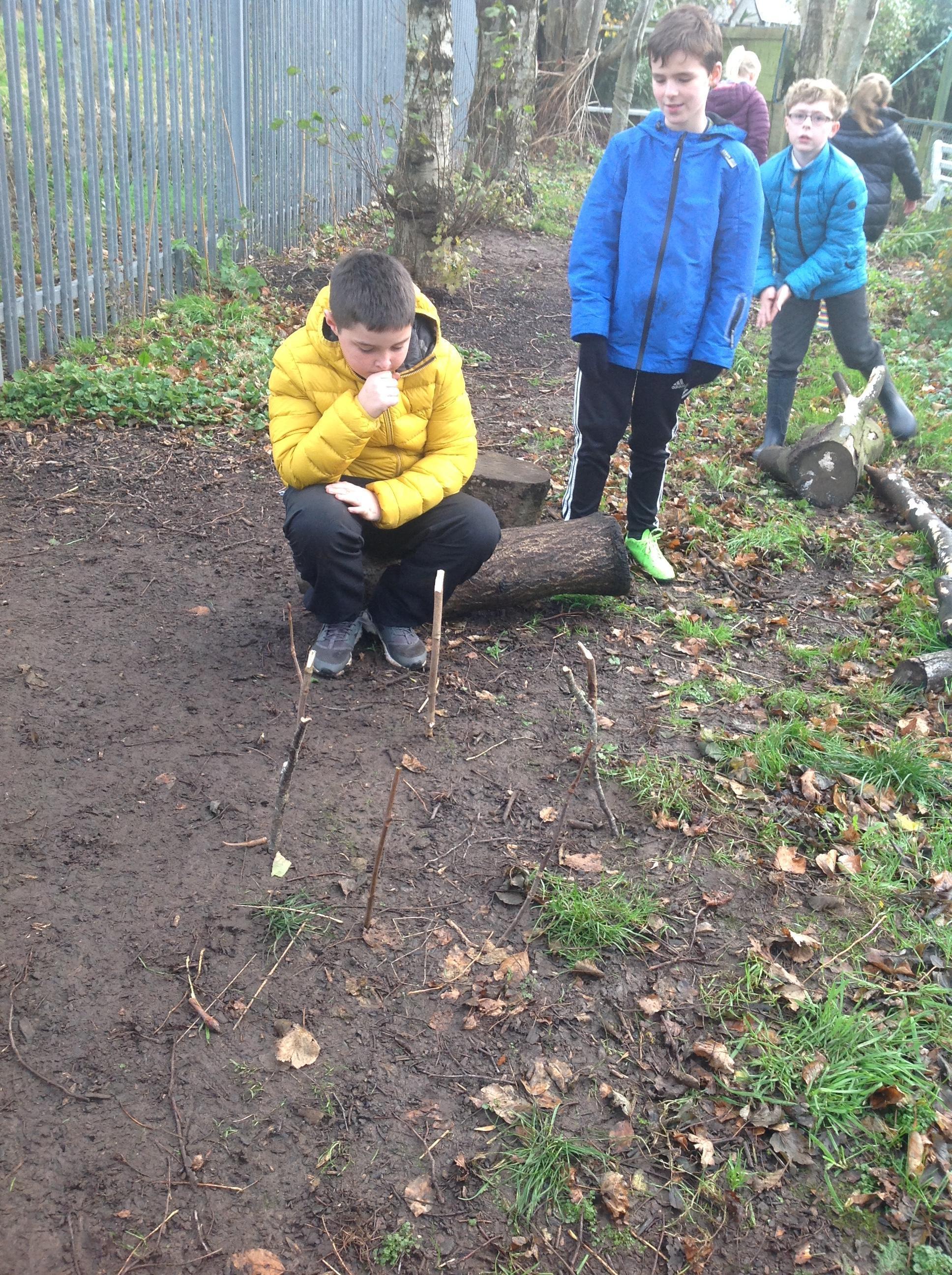 In our last woodland session of the term we were set the challenge to see who could build the biggest structure. We soon learnt that we would need to create a base to support the sticks if it was to be freestanding. At the end of the lesson we discovered all structures had a wider base than they did top.