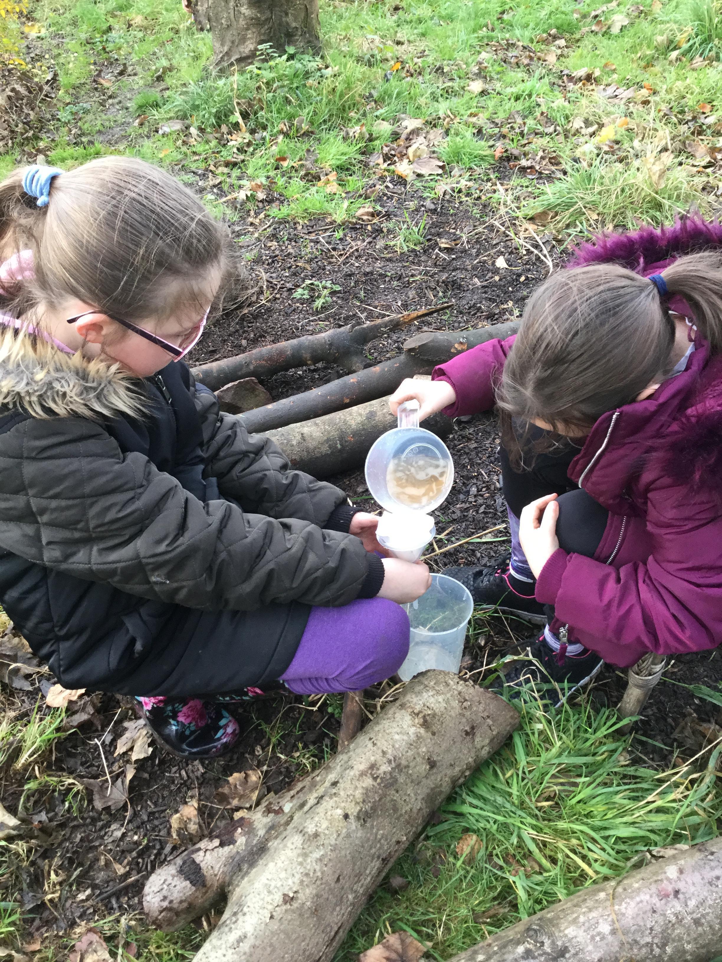 When we visited the woodland area we had to imagine we were the characters from our class novel, The Explorer, stranded in the forest with noting but a bucket of dirty, salty water. We were given the challenge to make our water drinkable. We worked in groups to think about how we could do this. It wasn't long before we realized we would need to sieve the twigs and leaves out. Once we had done that we still didn't want to drink the water as it was still murky with little bits of dirt in. It wasn't long before someone suggested using moss to filter it - fortunately Mrs Fawcett packed some funnels and filter paper to do this. Although the process was slow the water looked loads cleaner but still not safe to drink because of the bacteria and salt. The next stage was to evaporate the water to separate the it from the salt before condensing the steam back into water to make water that would be drinkable. We then made the most of our campfire with a marshmallow.