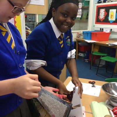 Monday 15th October was our annual cookery competition. This year we were faced with the challenge of using Mr McGregor's left over vegetables and persuading children to eat them by including them in cakes. At first we weren't convinced and after peeling, slicing and grating we were even less convinced that we would want to eat a cake full of vegetables until the end result was out of the oven. Once we did the taste test we were surprised how nice courgette, parsnip, beetroot, carrot and parsnip could taste and has definitely converted some of us to eat our 5 a day if it is disguised in a cake. The judges must have agreed too as we won the trophy!
