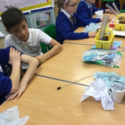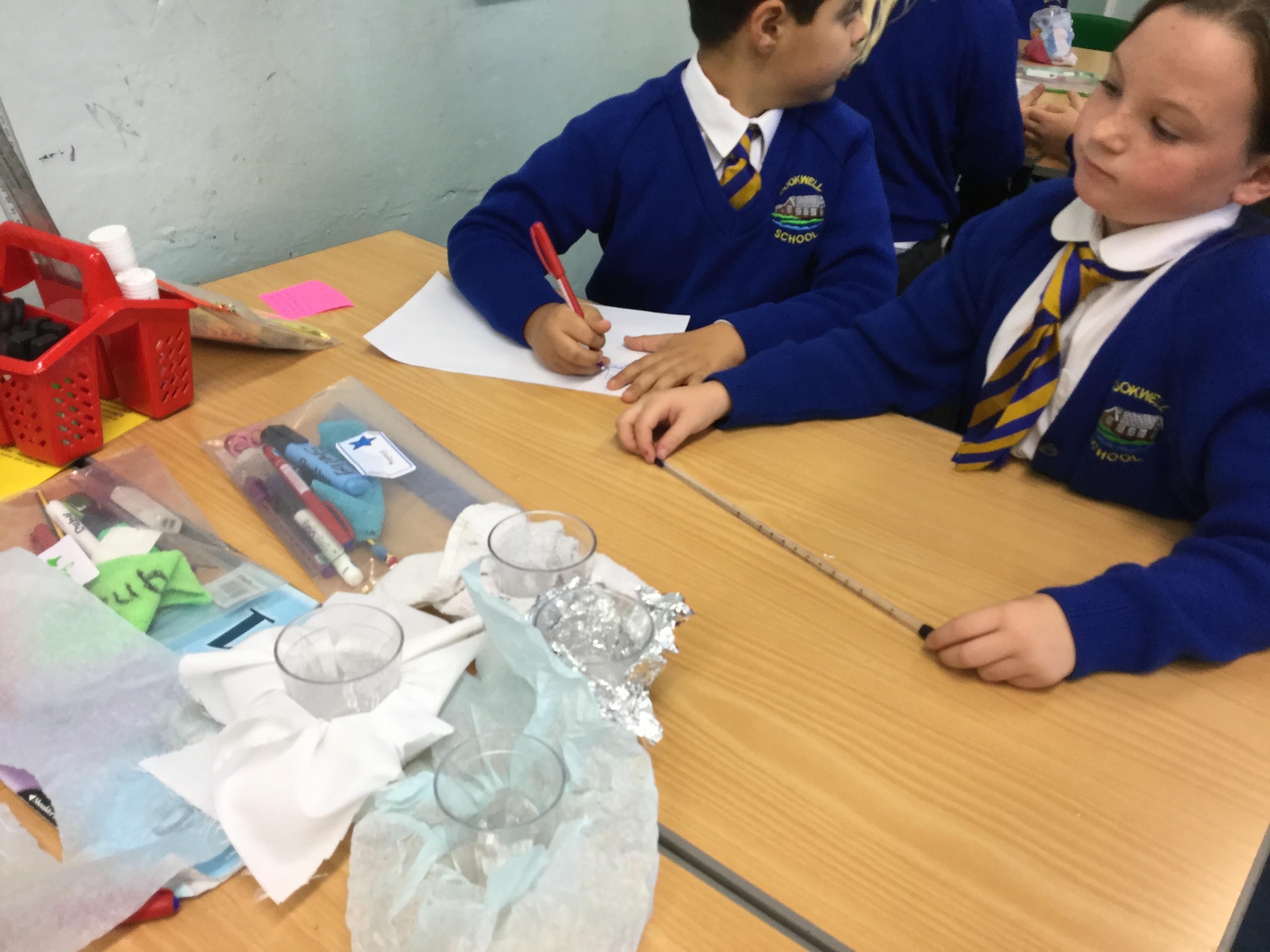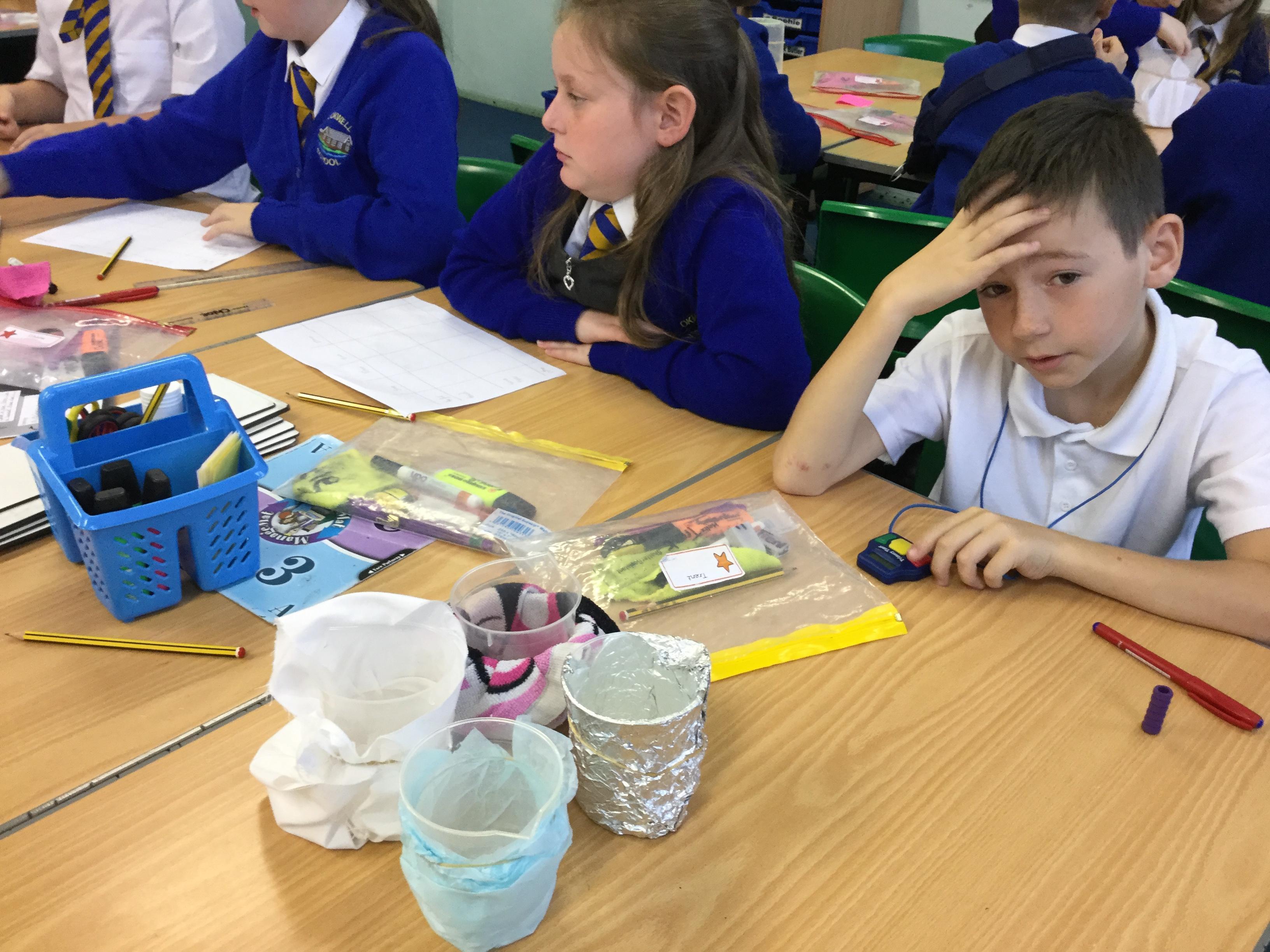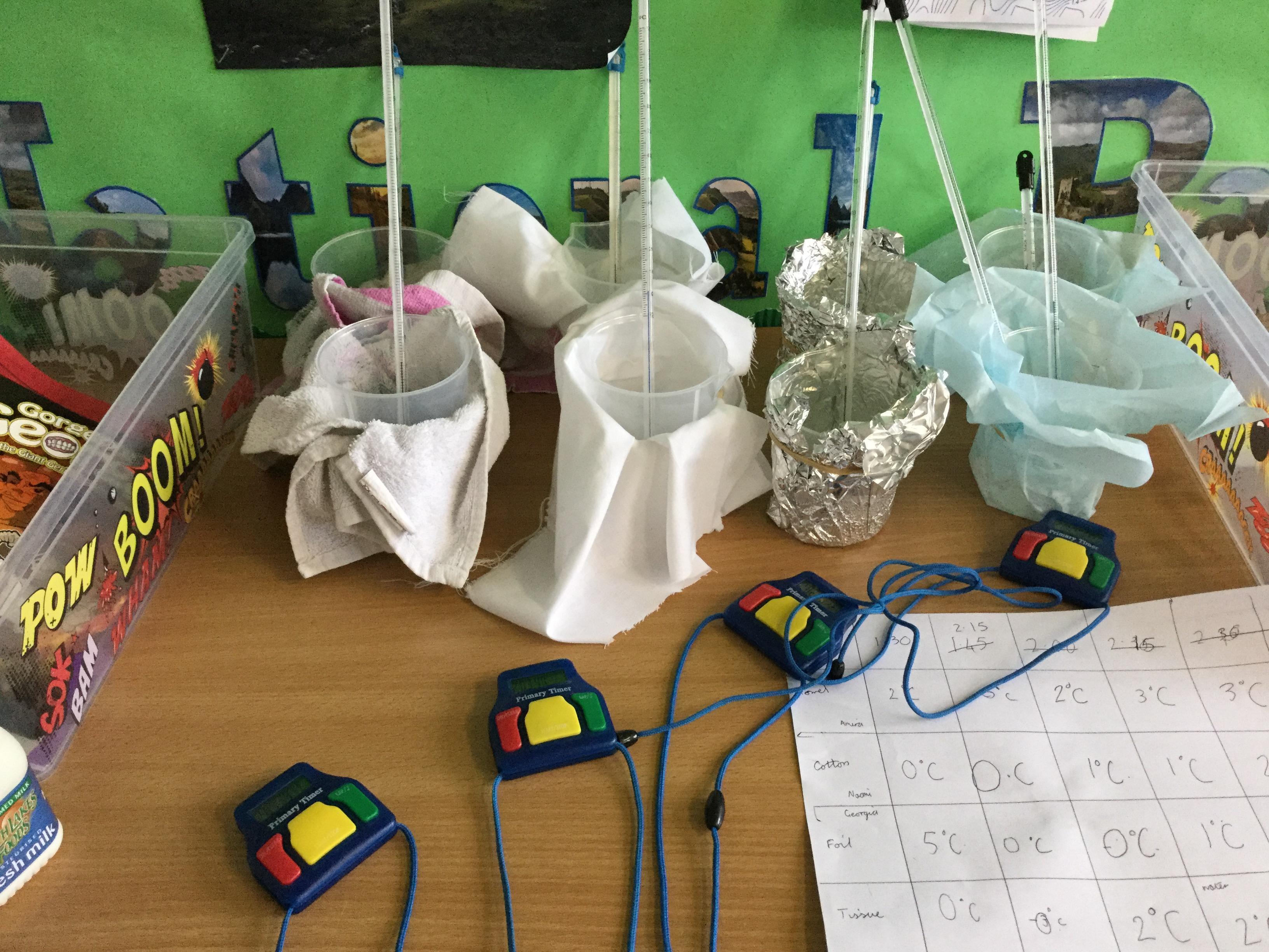 In science we have been planning and investigating which material would be the best to make our lunch bags out of in order to keep it cool. We carried out our test and then wrote a conclusion.