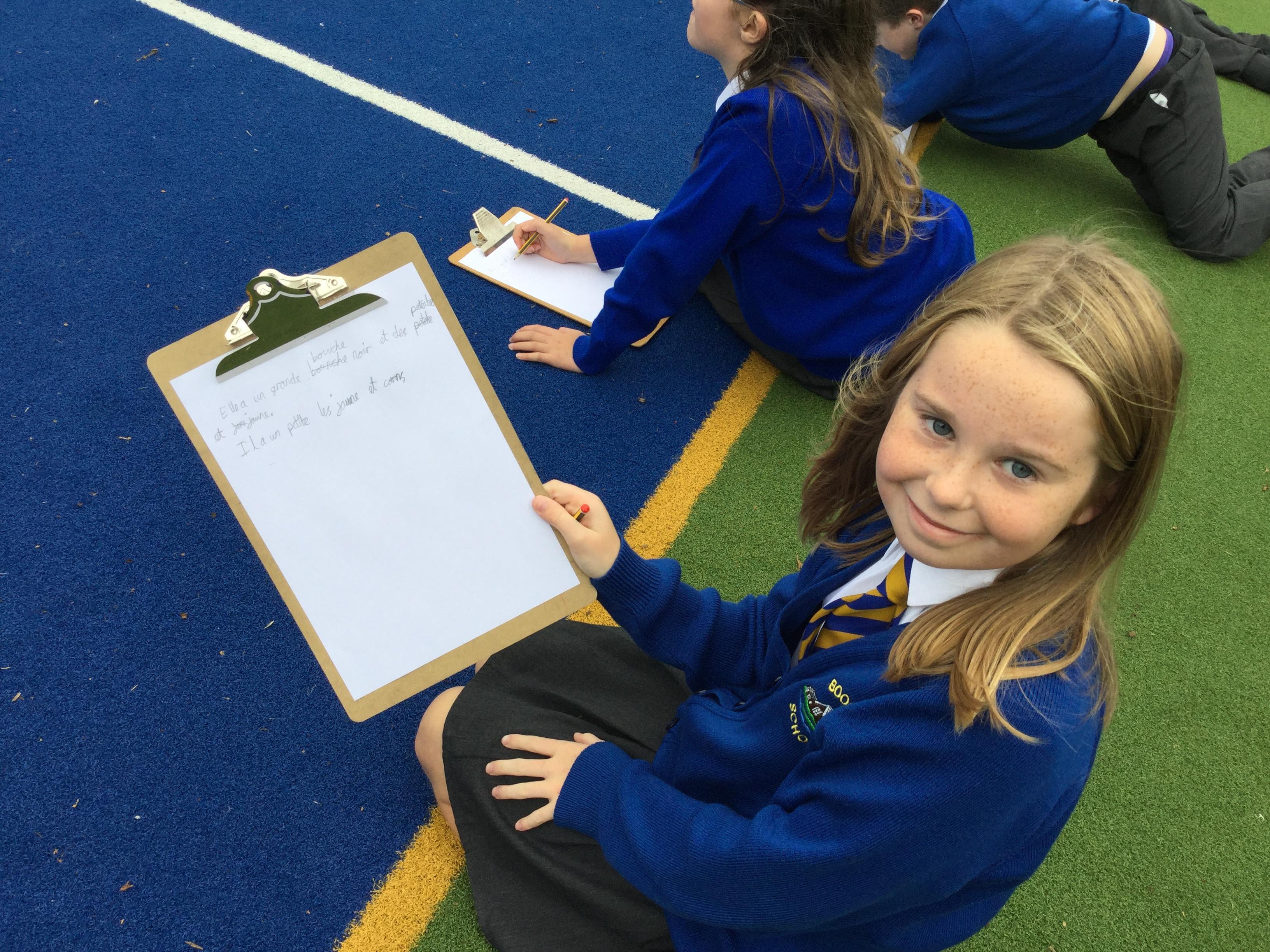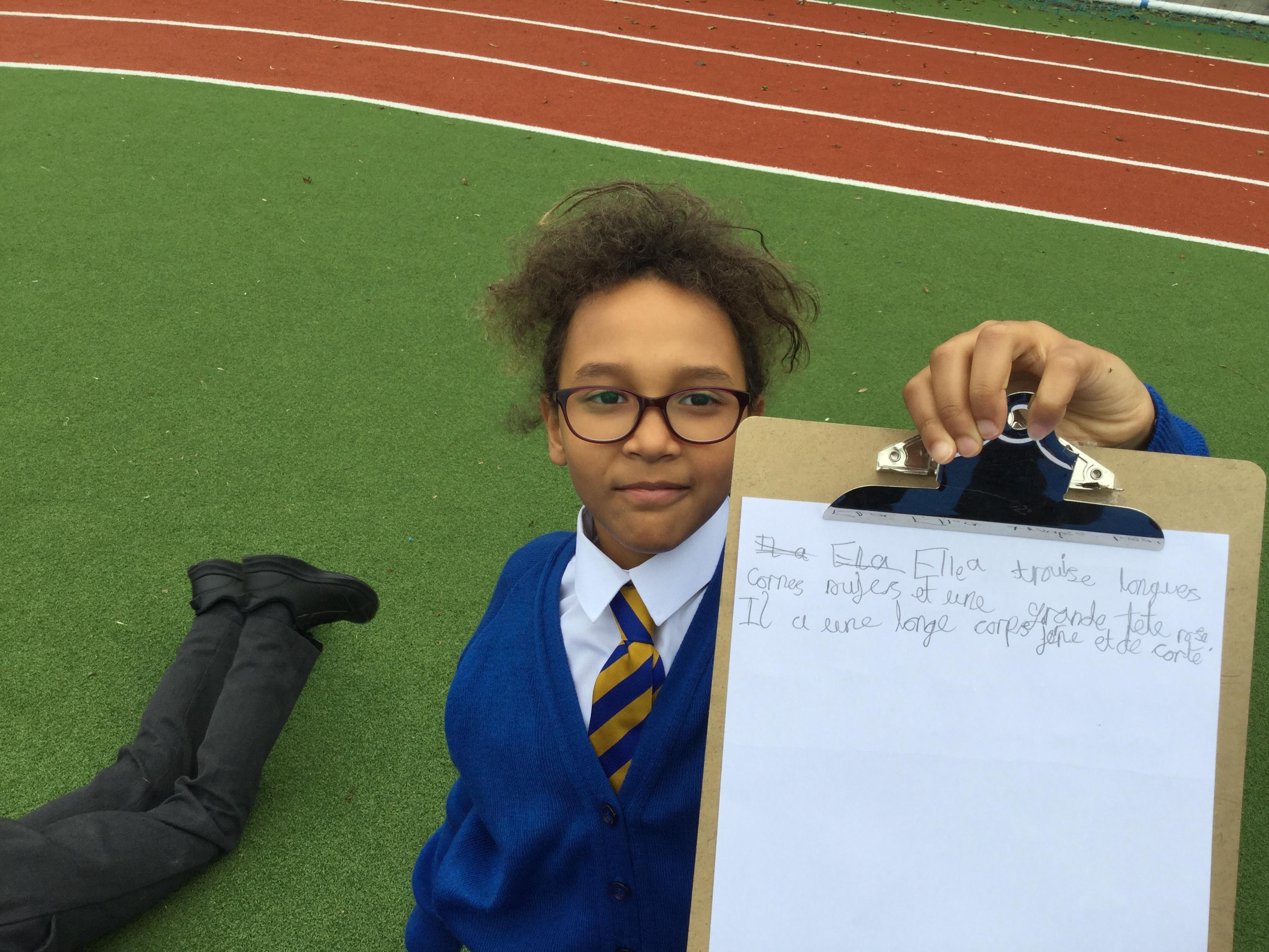 The children have been decoding a French text about the Komodo dragon by finding words that are similar to English words. They then had to write down some facts that they could learn from reading the text.