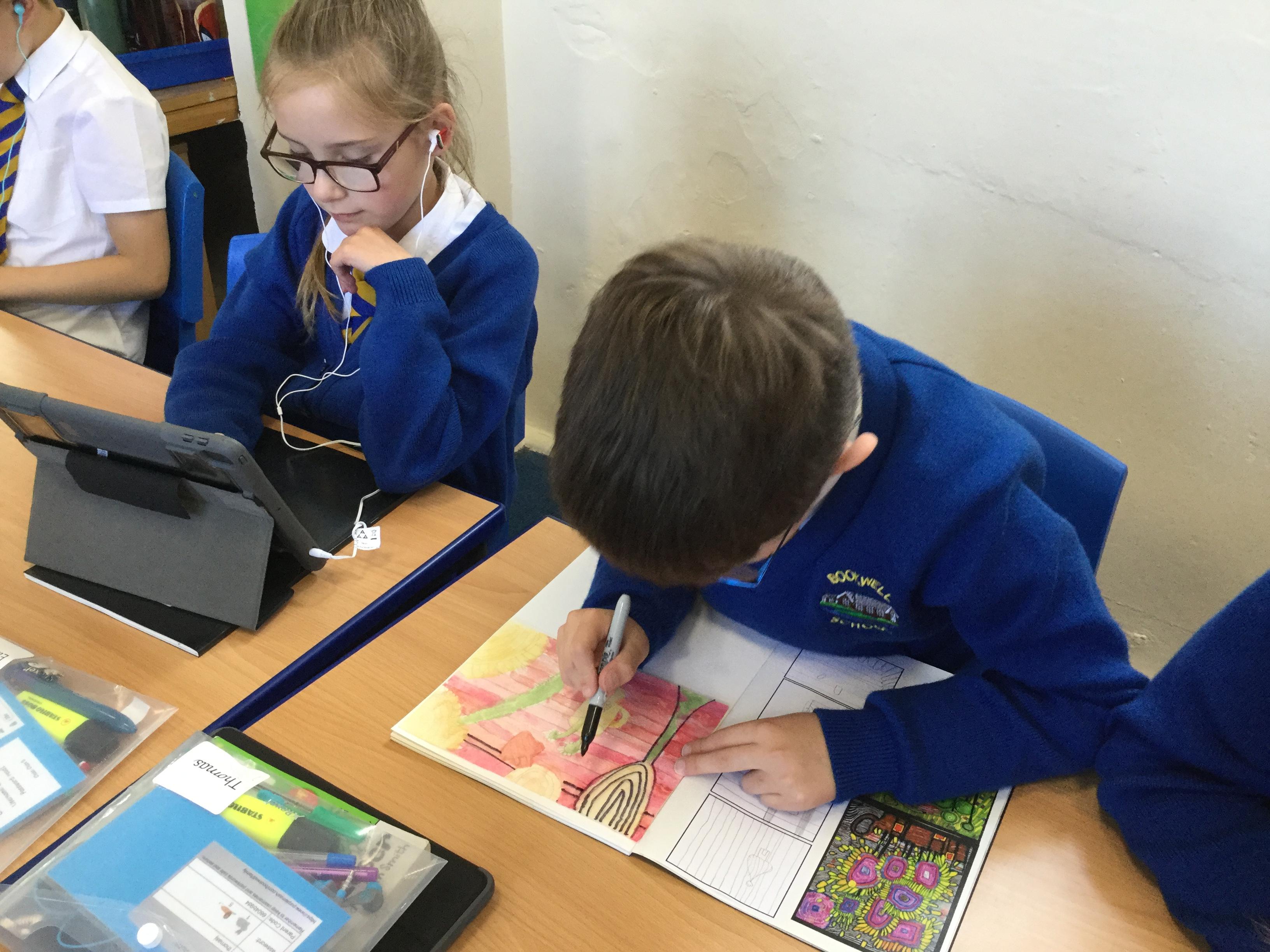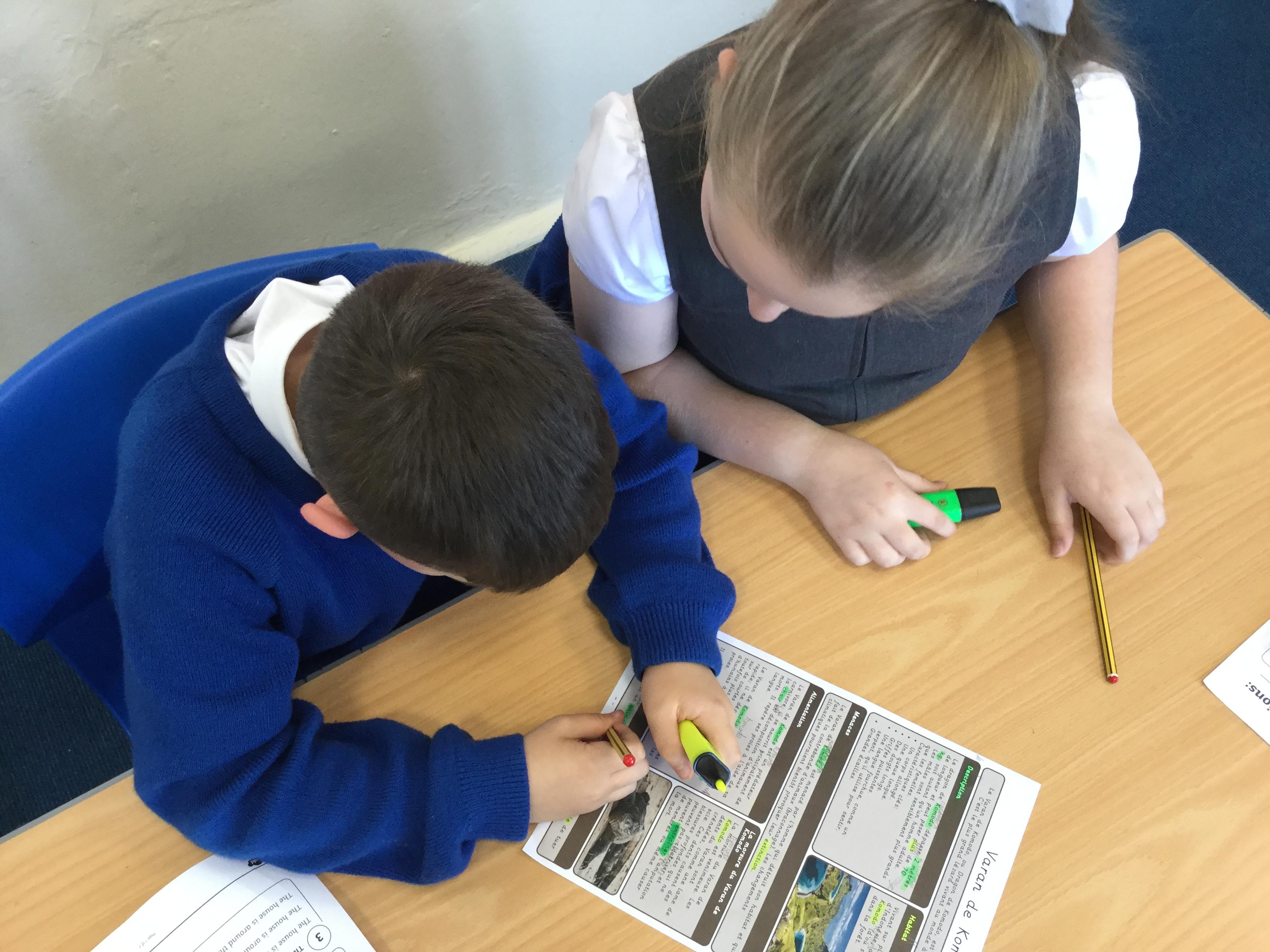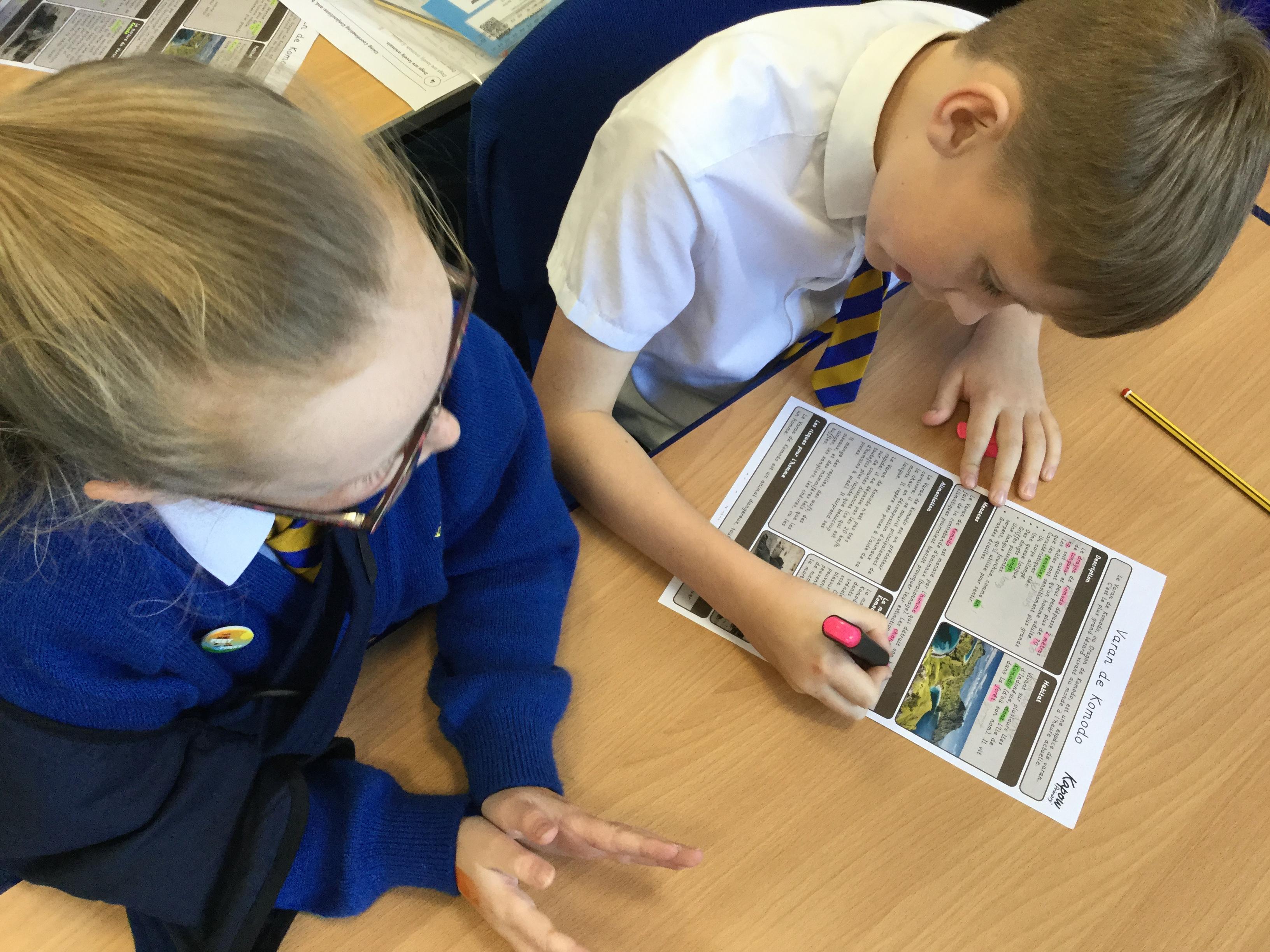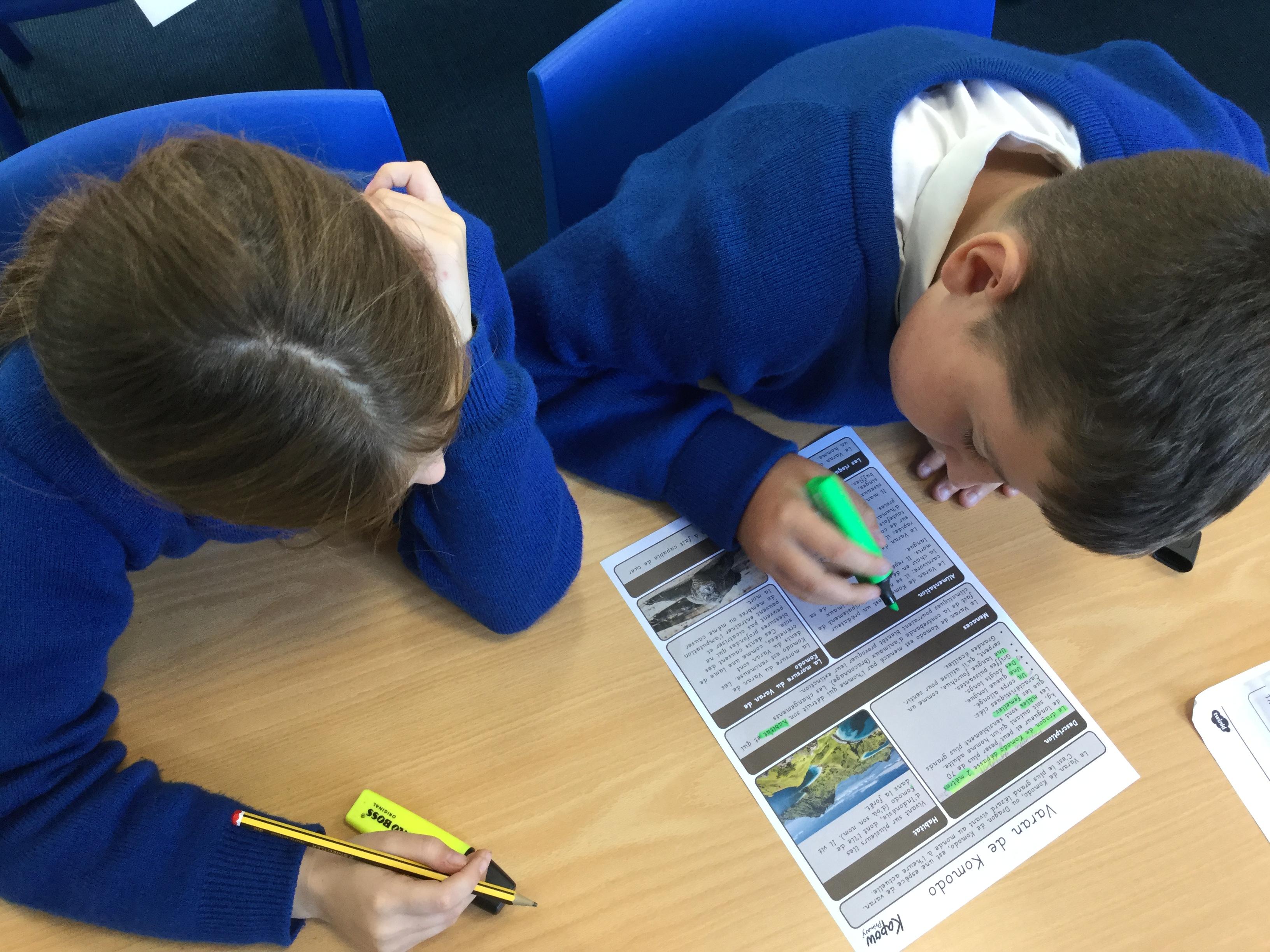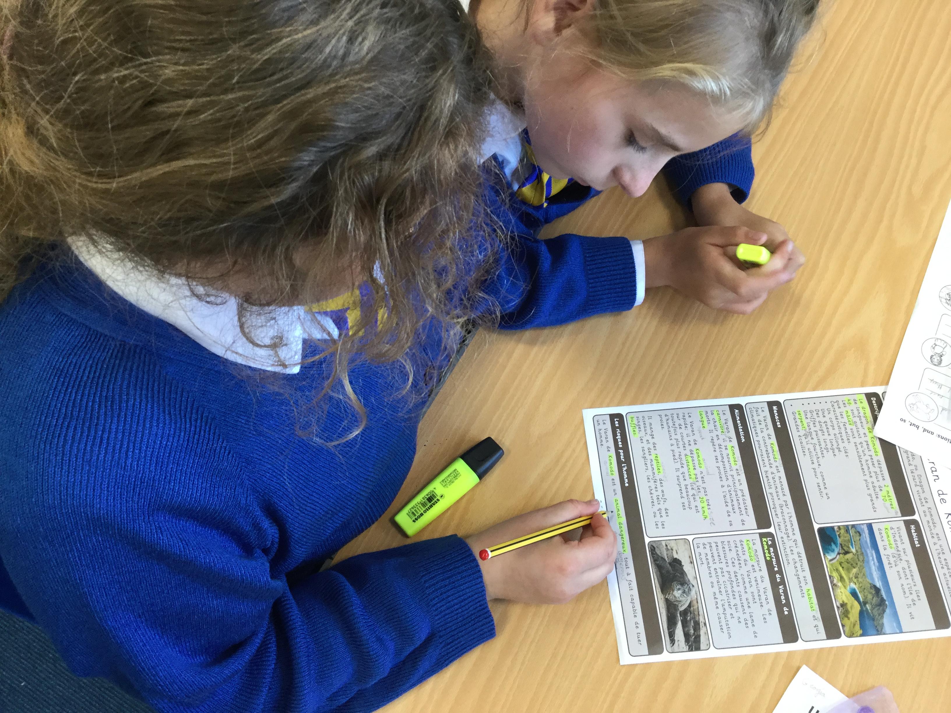 The children have been decoding a French text about the Komodo dragon by finding words that are similar to English words. They then had to write down some facts that they could learn from reading the text.