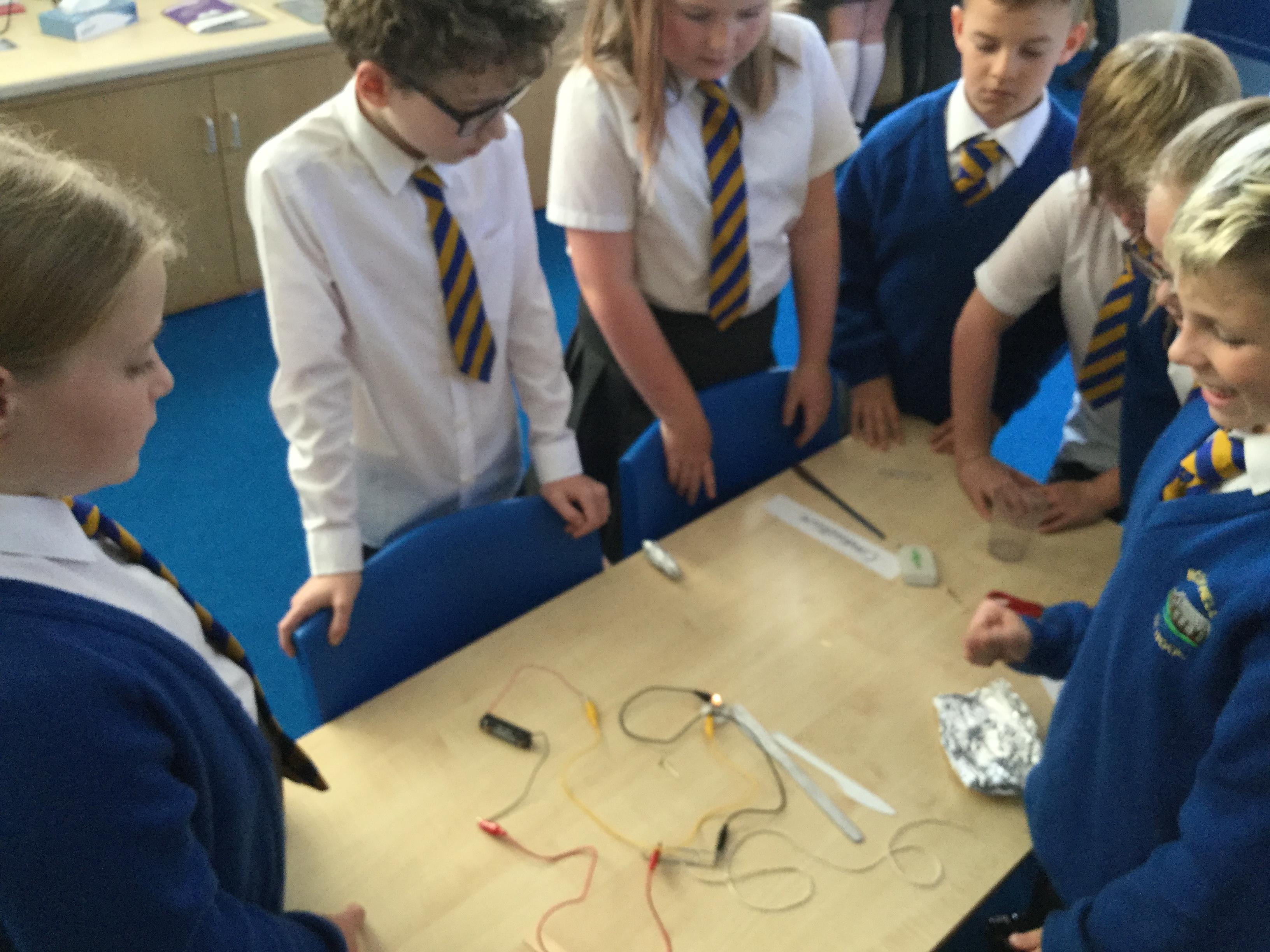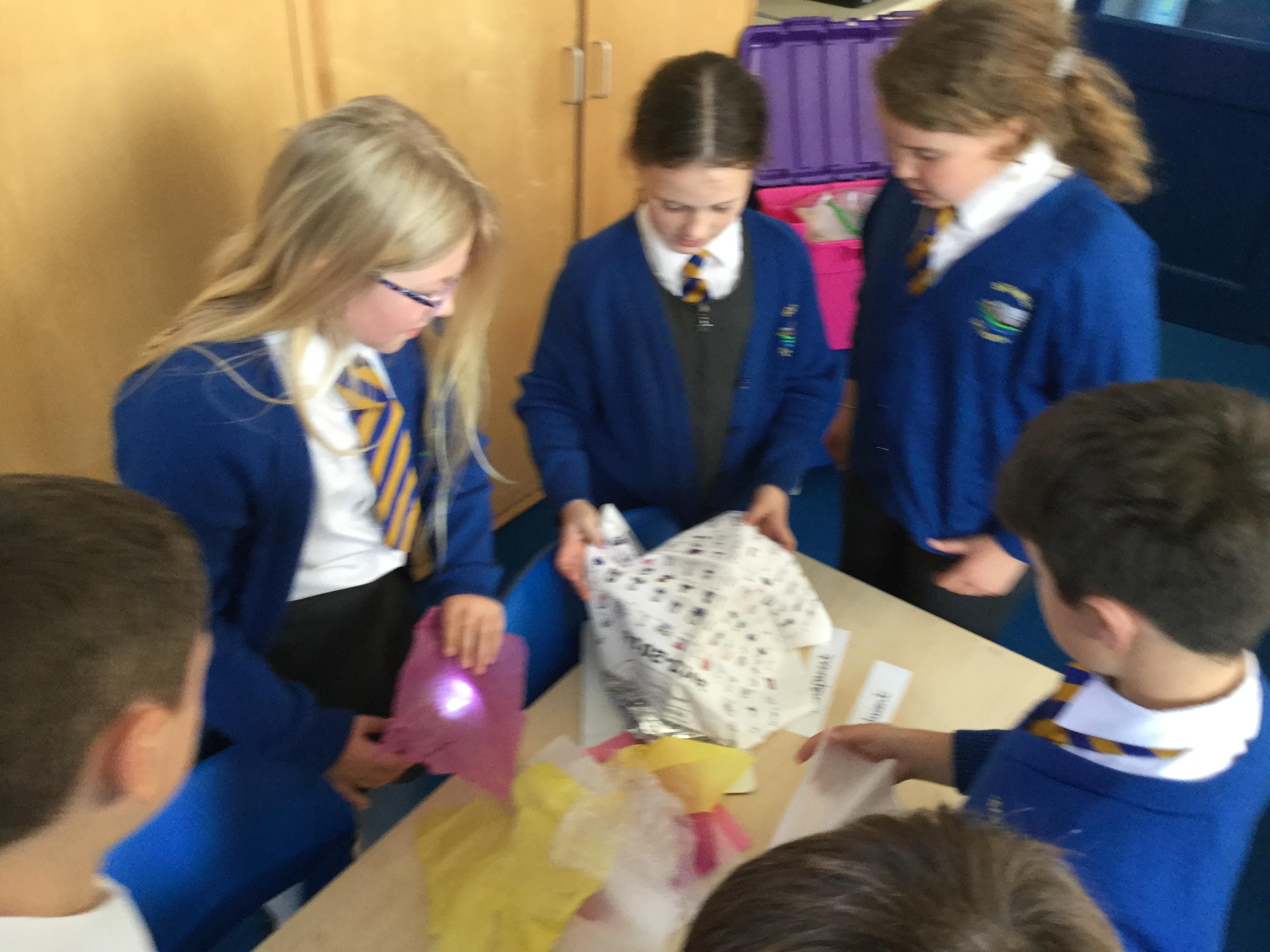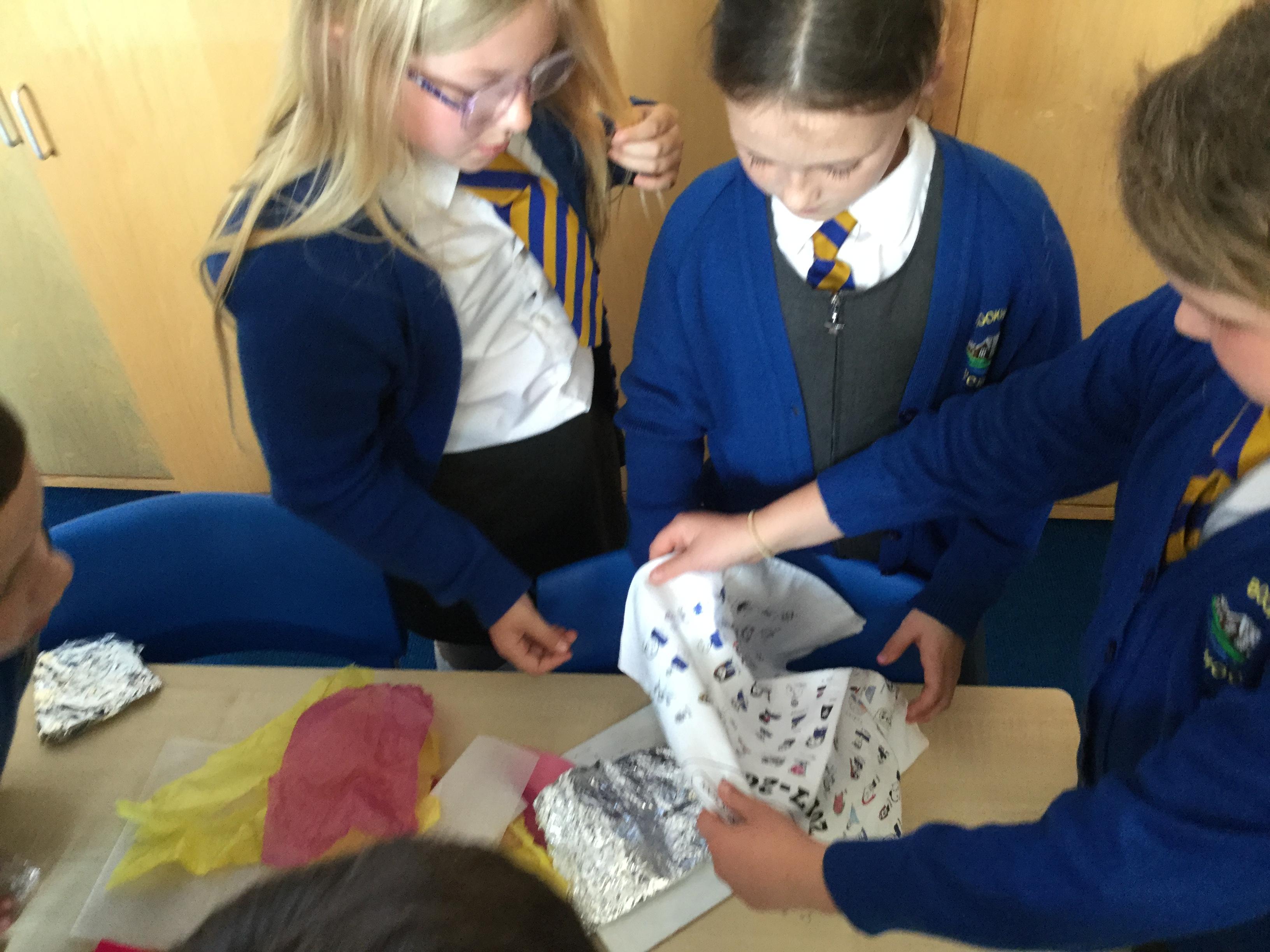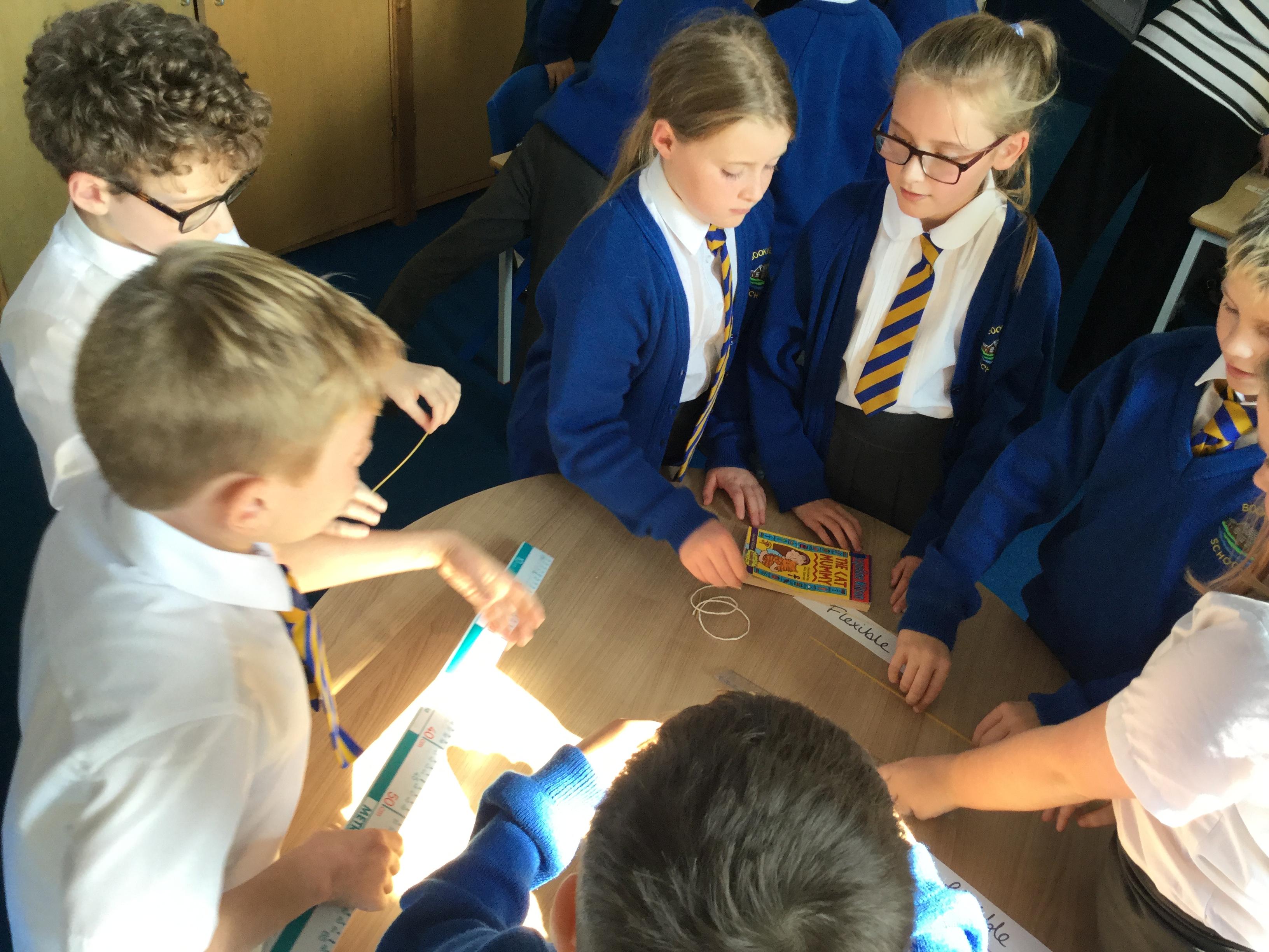 The children have been comparing and contrasting materials based on their properties. They had to determine which materials were: conductive, non-conductive, flexible, translucent, transparent and opaque.
