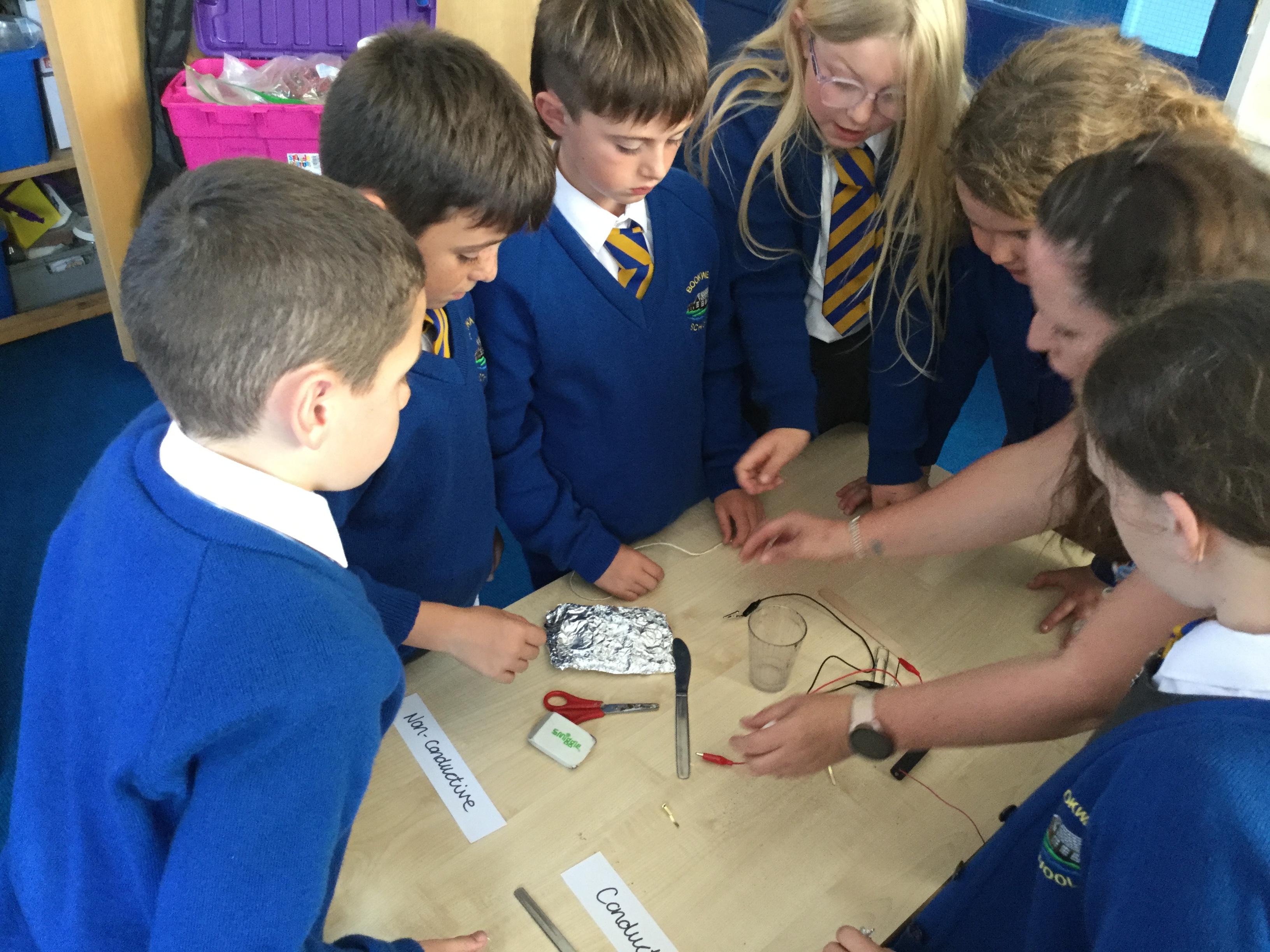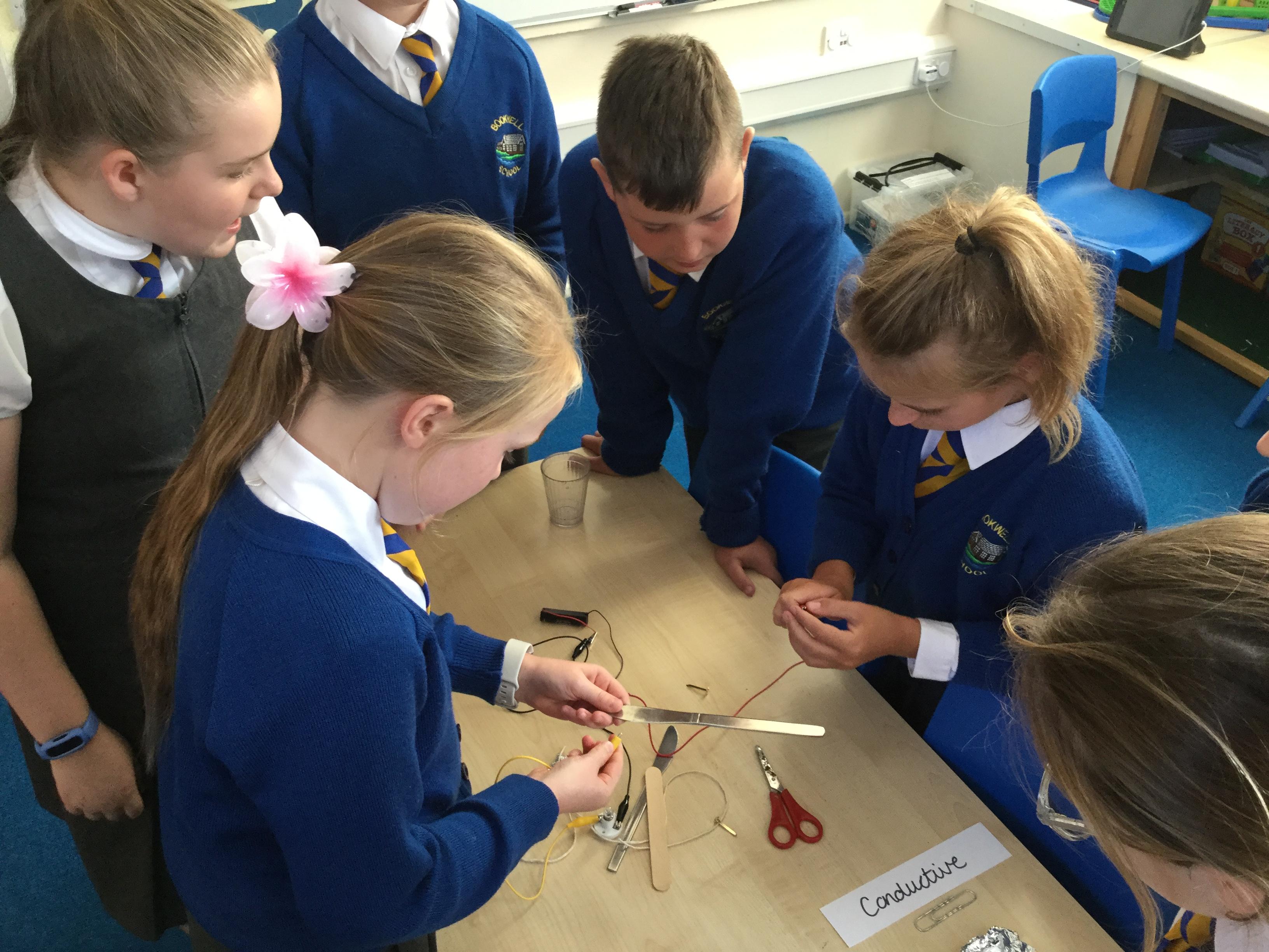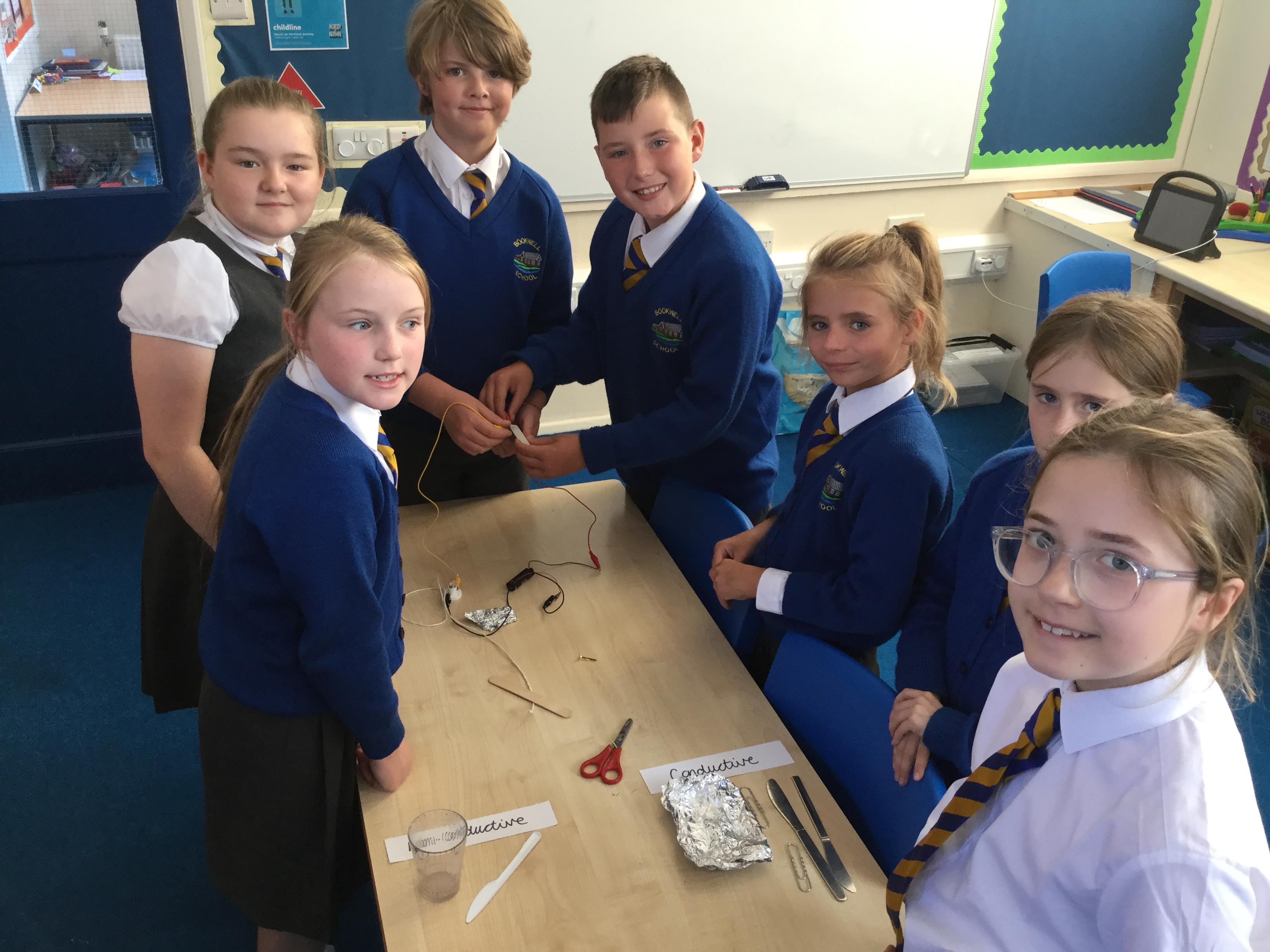 The children have been comparing and contrasting materials based on their properties. They had to determine which materials were: conductive, non-conductive, flexible, translucent, transparent and opaque.