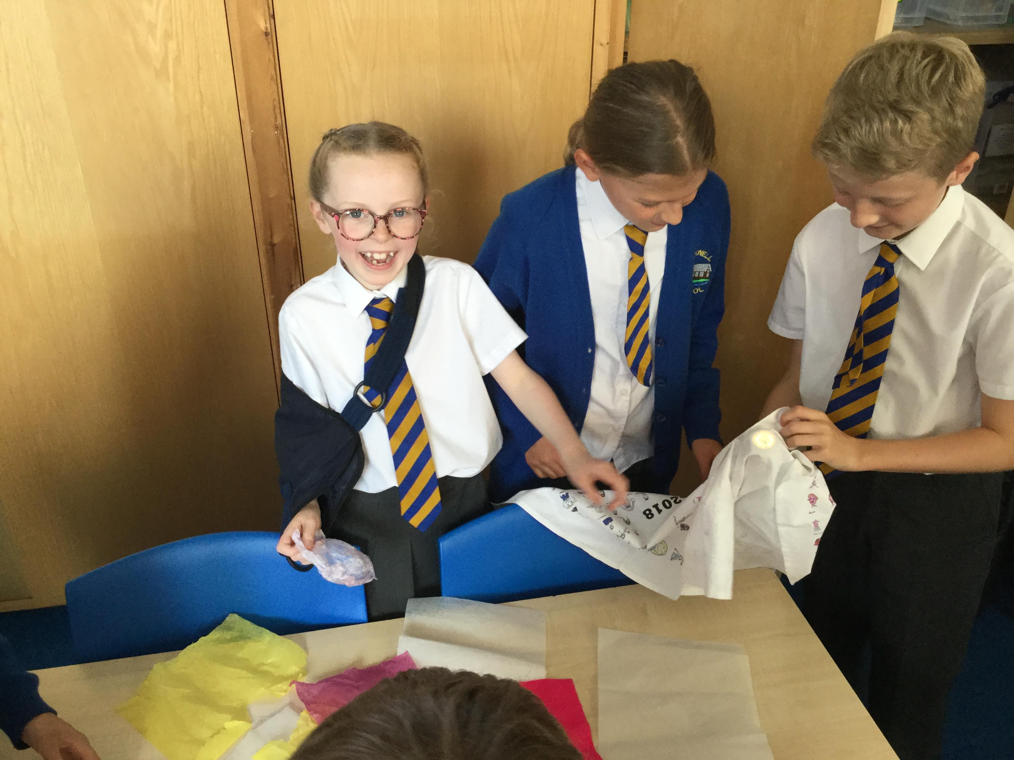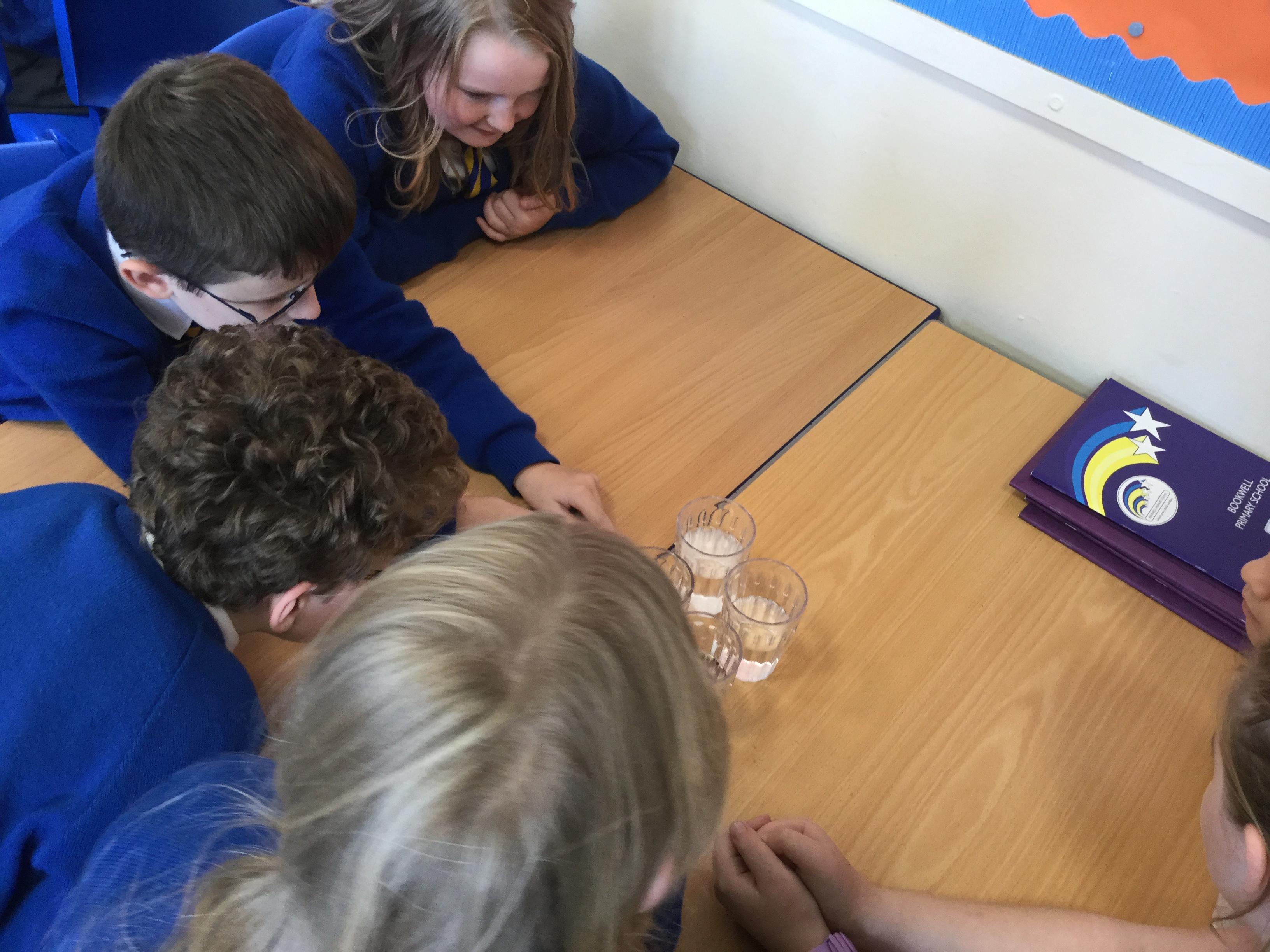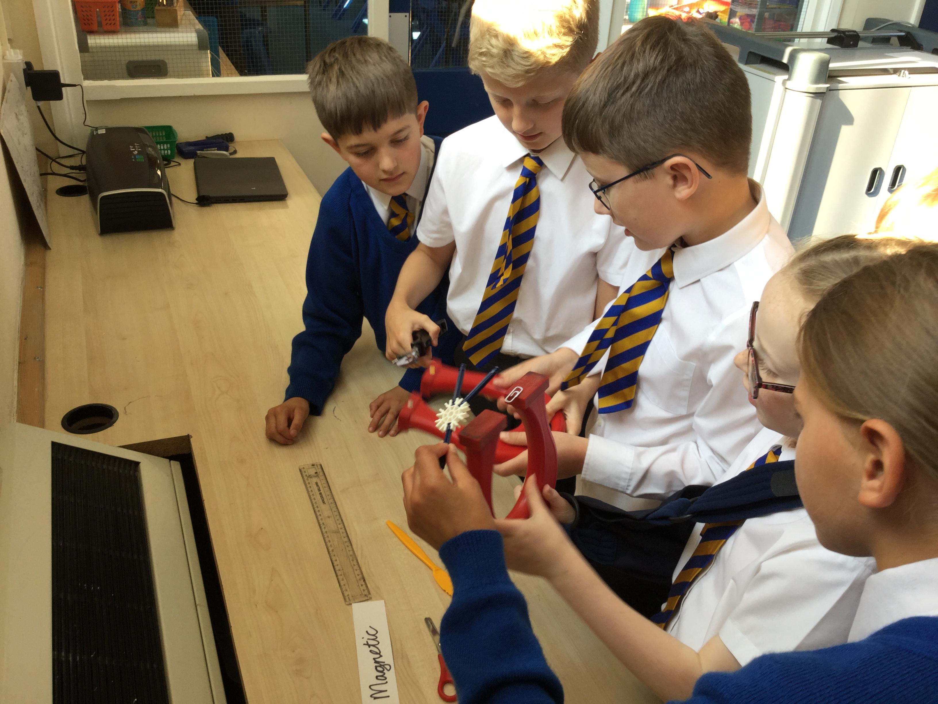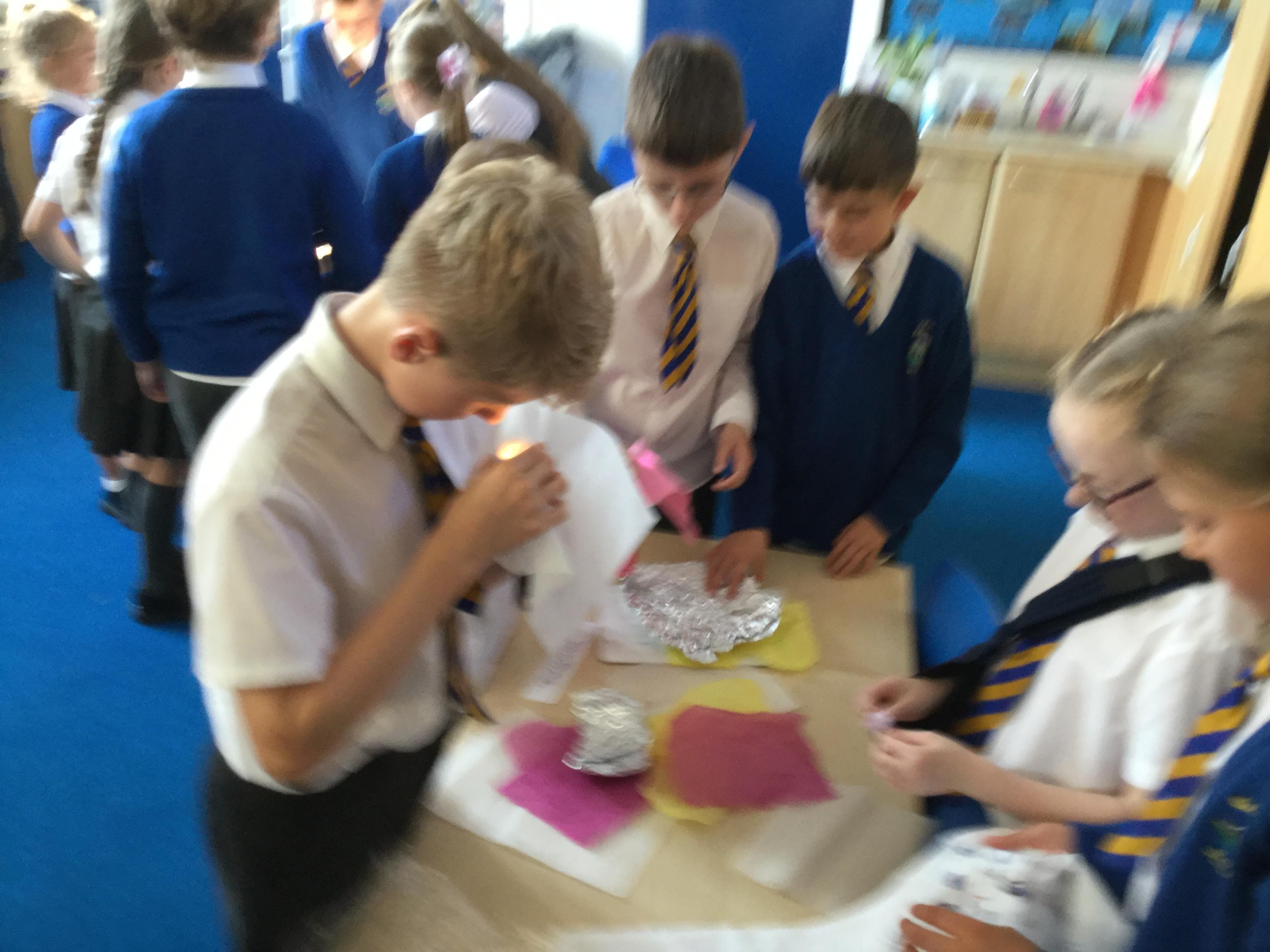 The children have been comparing and contrasting materials based on their properties. They had to determine which materials were: conductive, non-conductive, flexible, translucent, transparent and opaque.