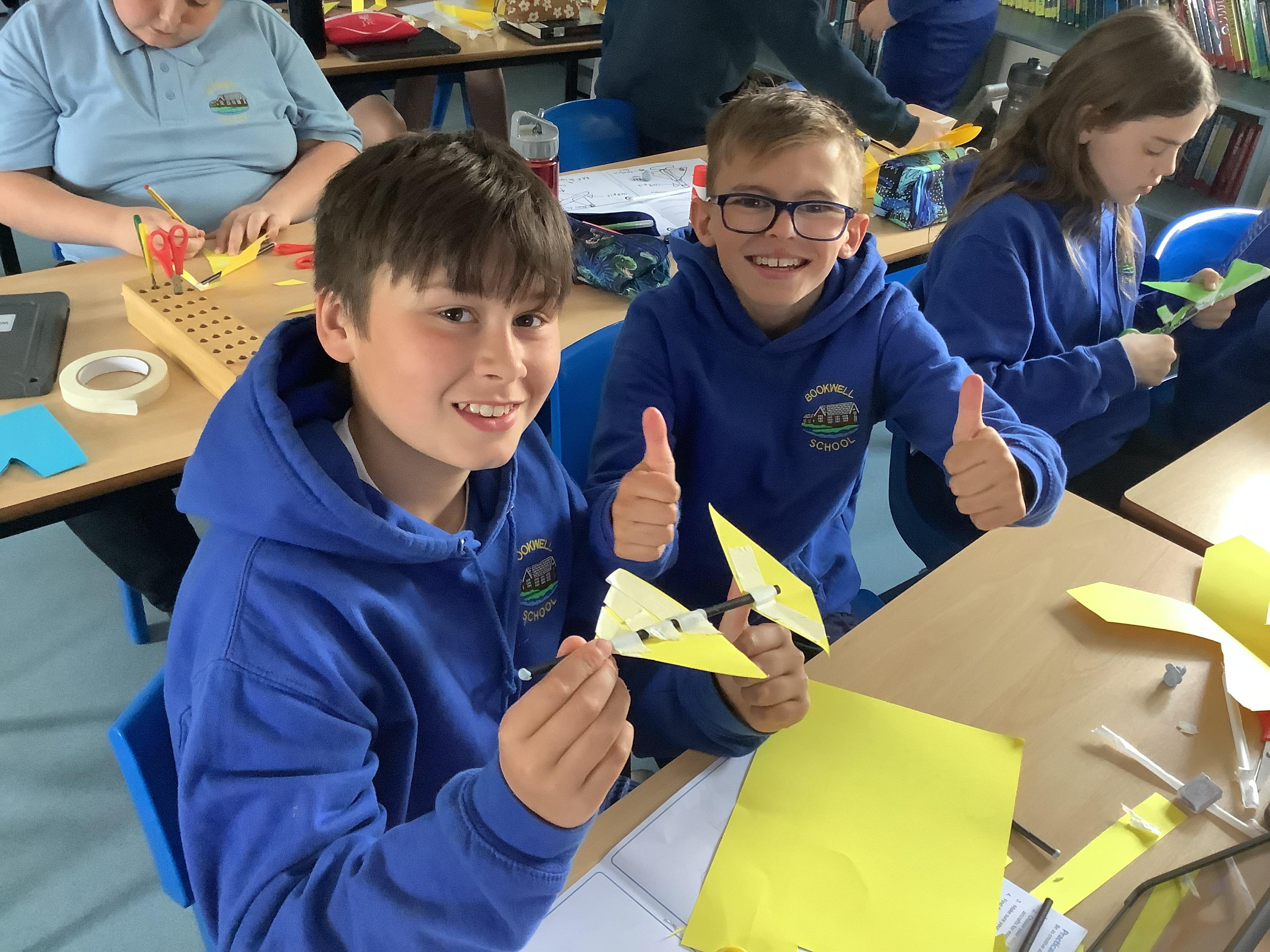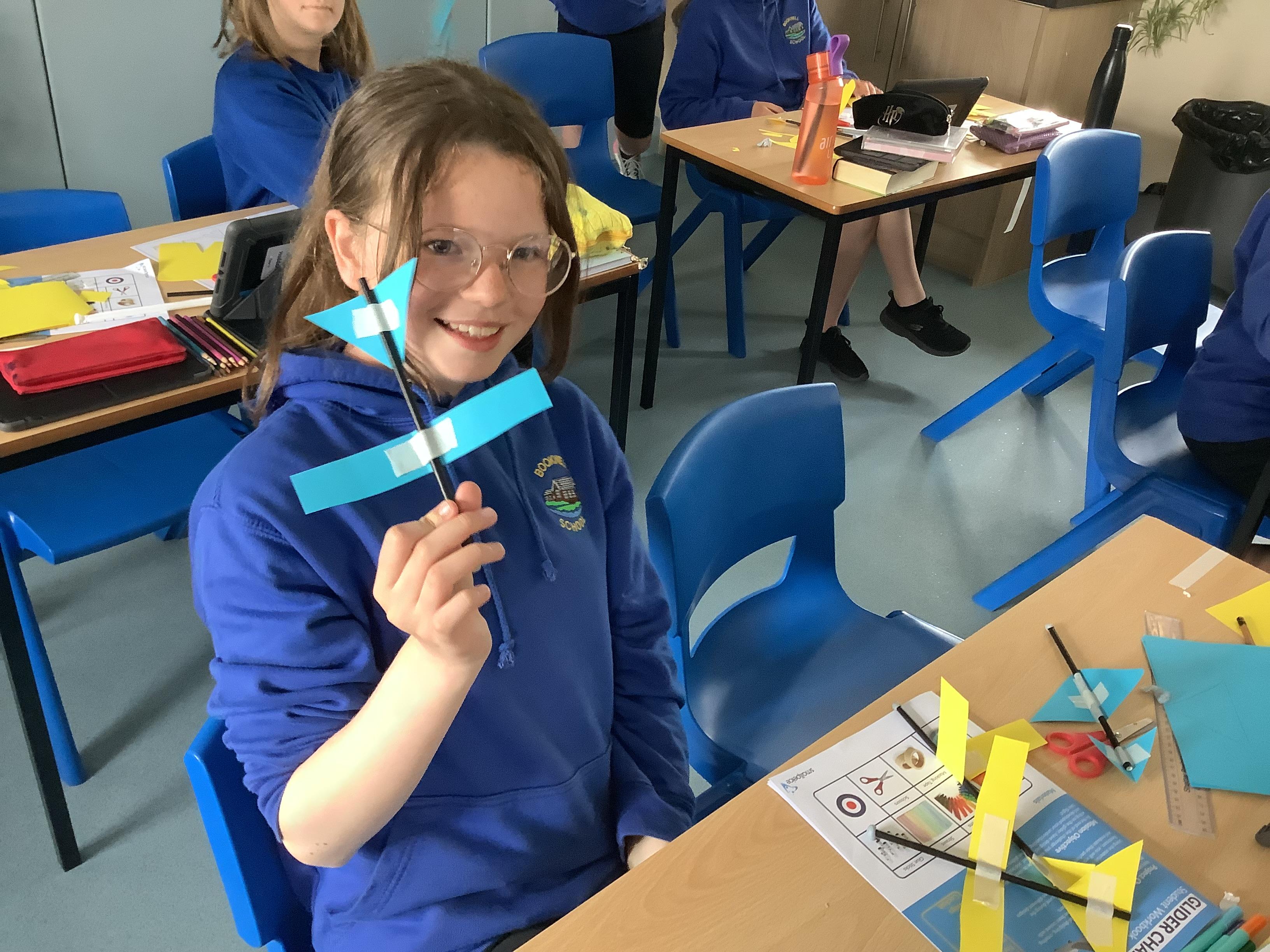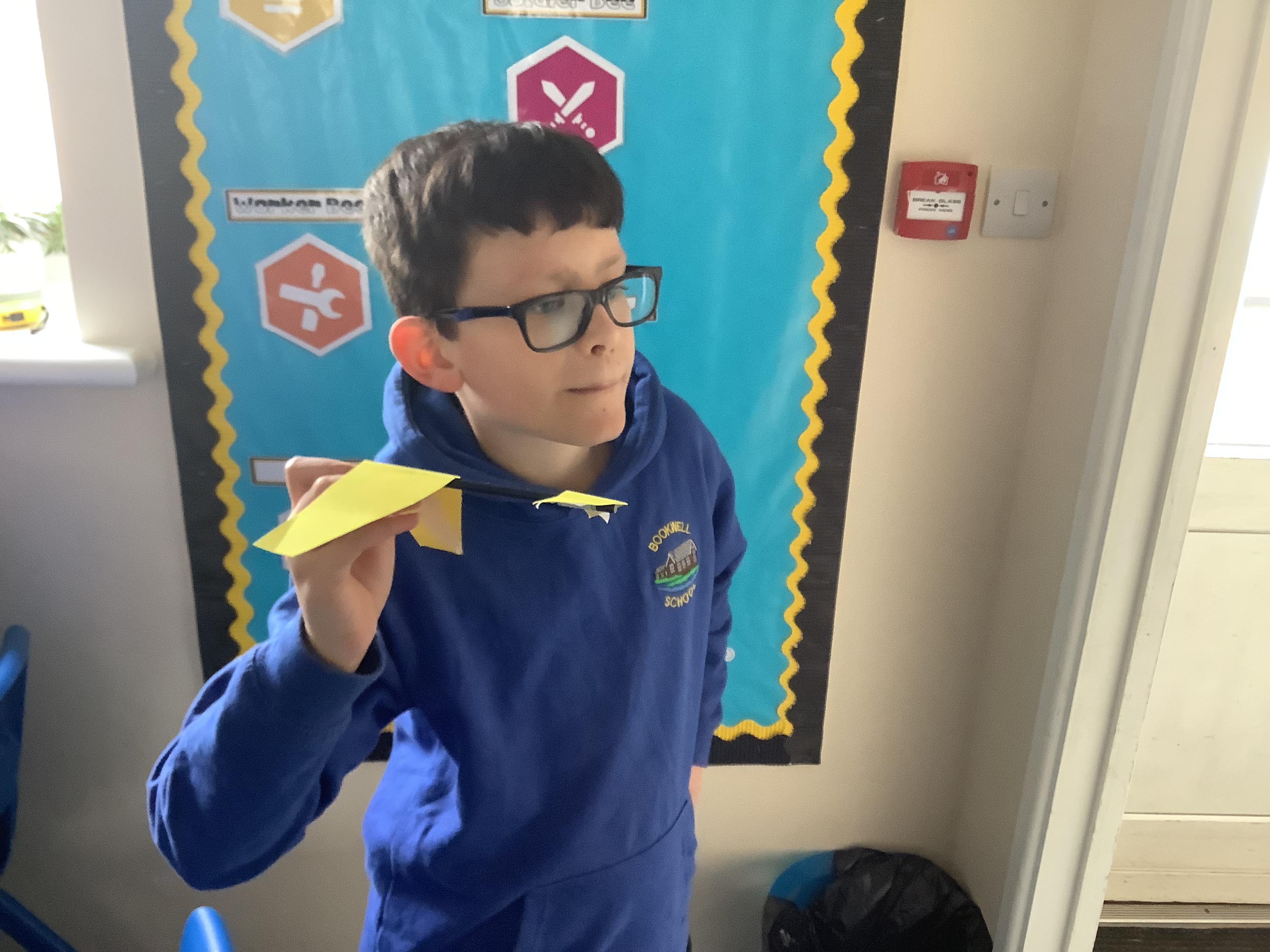 Today, Year 6 took part in the RAF Glider Challenge. The event was designed to enrich many areas of the curriculum including: Science, Maths, English, Design and Technology, and PSHE. They joined a livestream with an engineer and they were tasked with designing, creating, testing, and improving three prototype gliders. They worked in pairs and were given a number of resources - card, straws, Blu Tac and masking tape. By the end of the challenge, the children were able to identify the different forces acting on the glider and had an understanding of how gliders and other aircraft take flight. The most fun part was when they got to take their creations for a test flight on the MUGA!