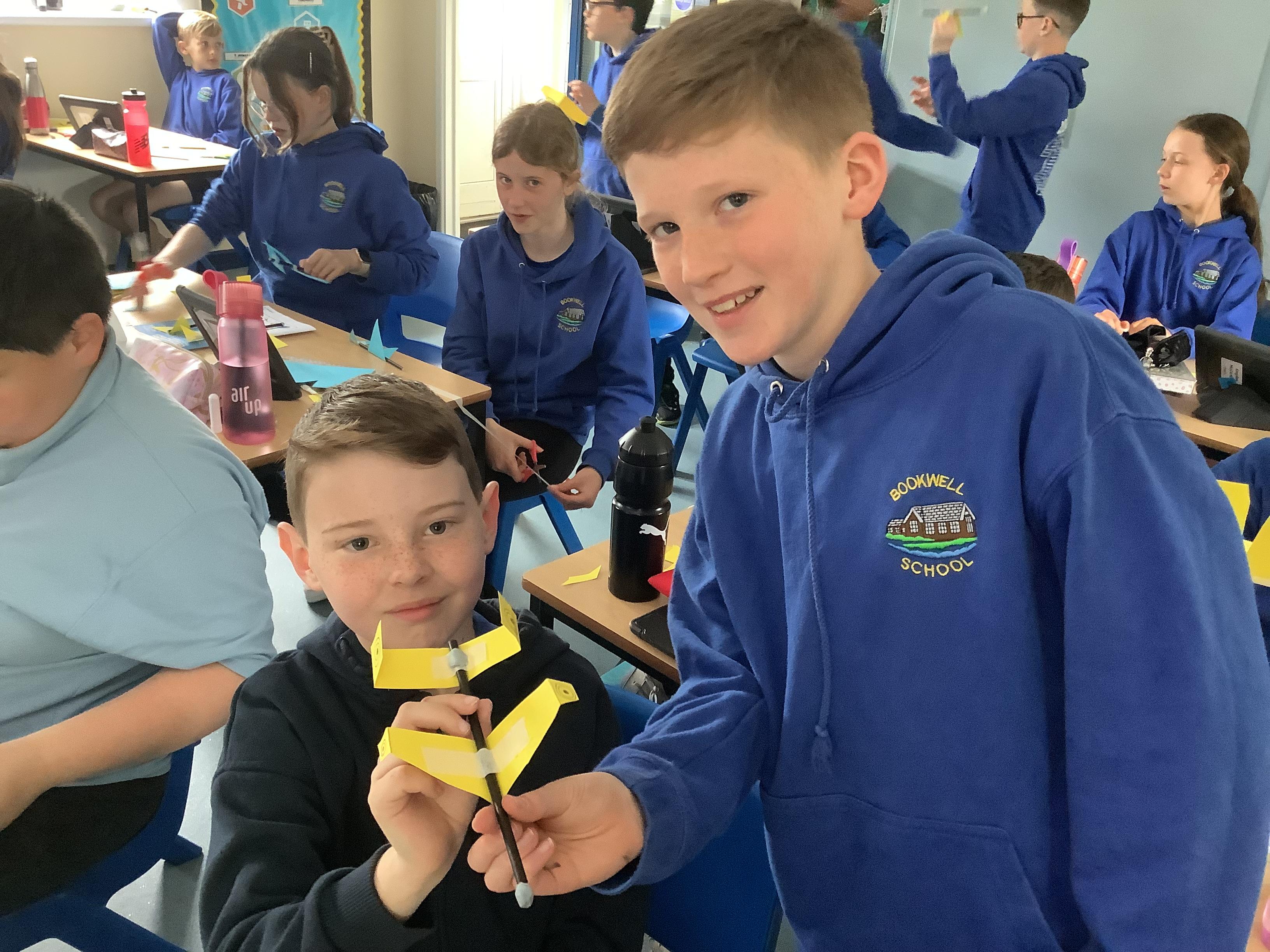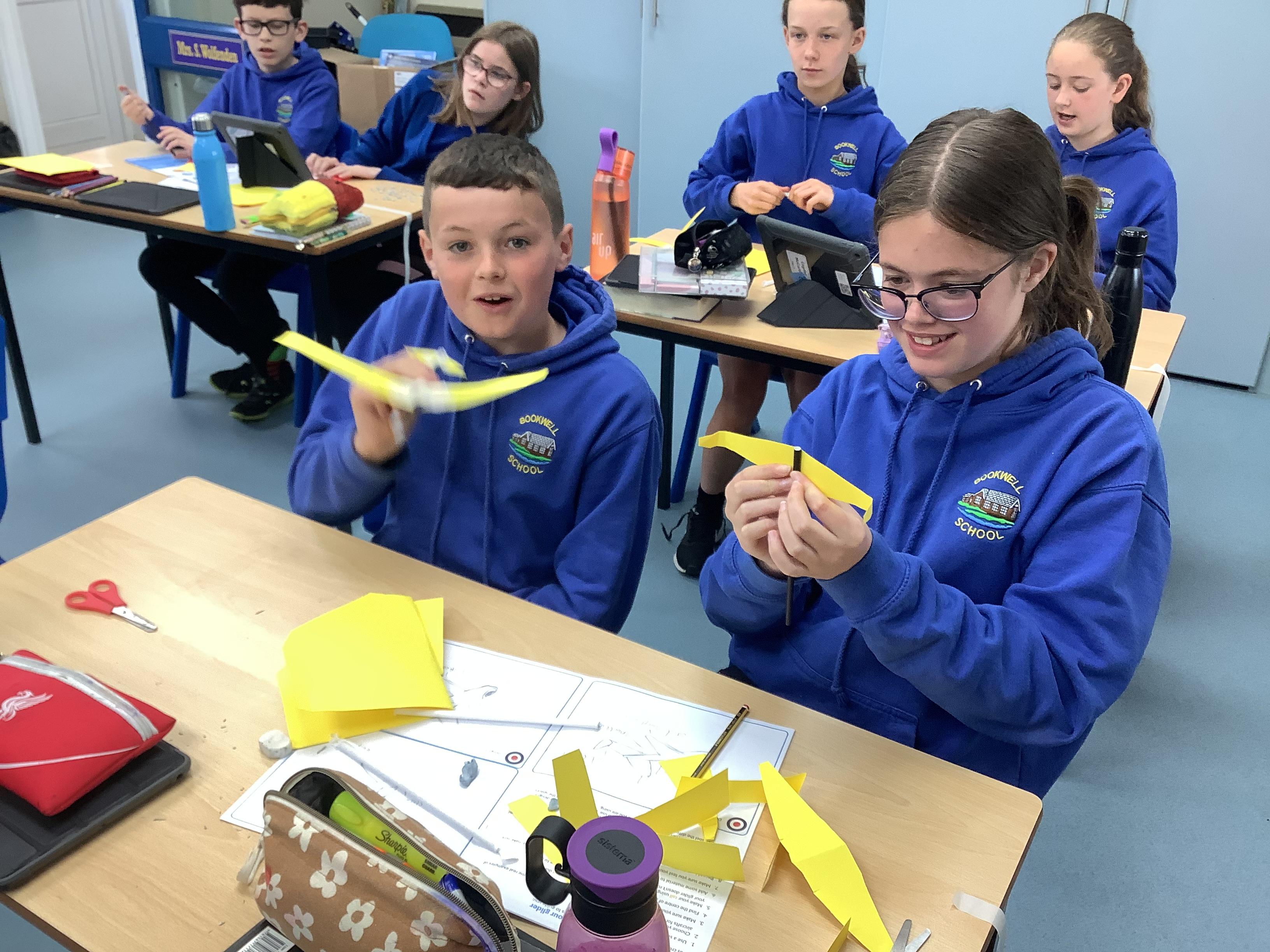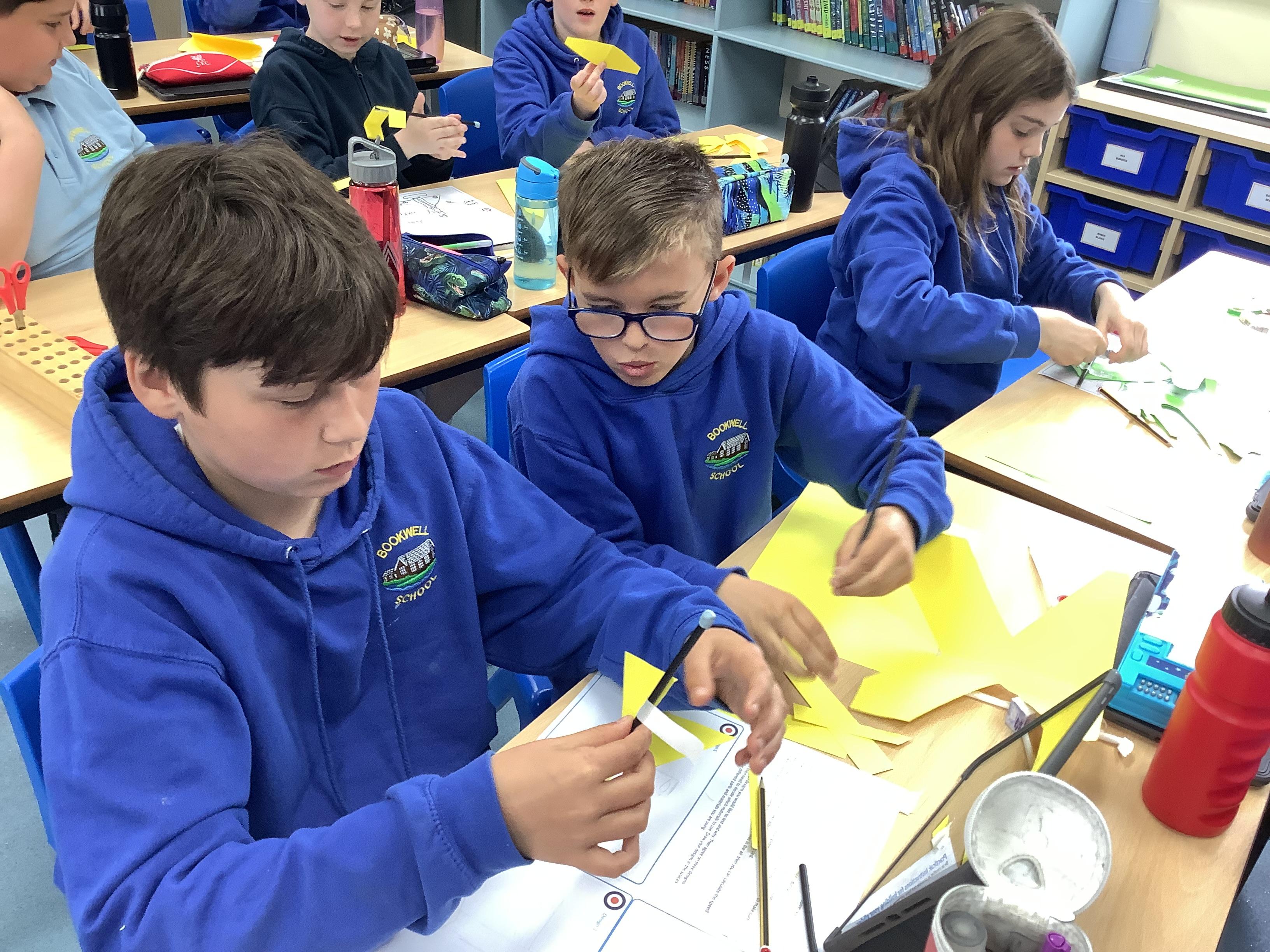 Today, Year 6 took part in the RAF Glider Challenge. The event was designed to enrich many areas of the curriculum including: Science, Maths, English, Design and Technology, and PSHE. They joined a livestream with an engineer and they were tasked with designing, creating, testing, and improving three prototype gliders. They worked in pairs and were given a number of resources - card, straws, Blu Tac and masking tape. By the end of the challenge, the children were able to identify the different forces acting on the glider and had an understanding of how gliders and other aircraft take flight. The most fun part was when they got to take their creations for a test flight on the MUGA!