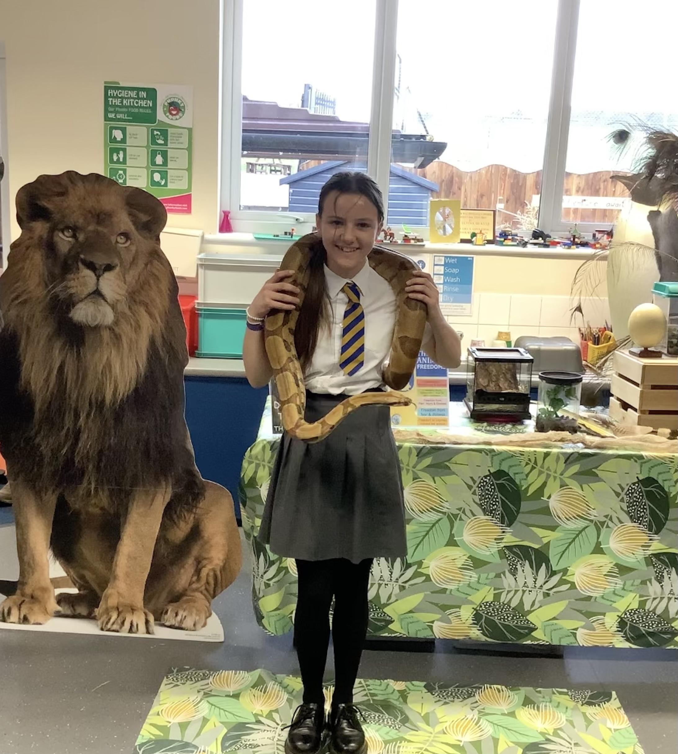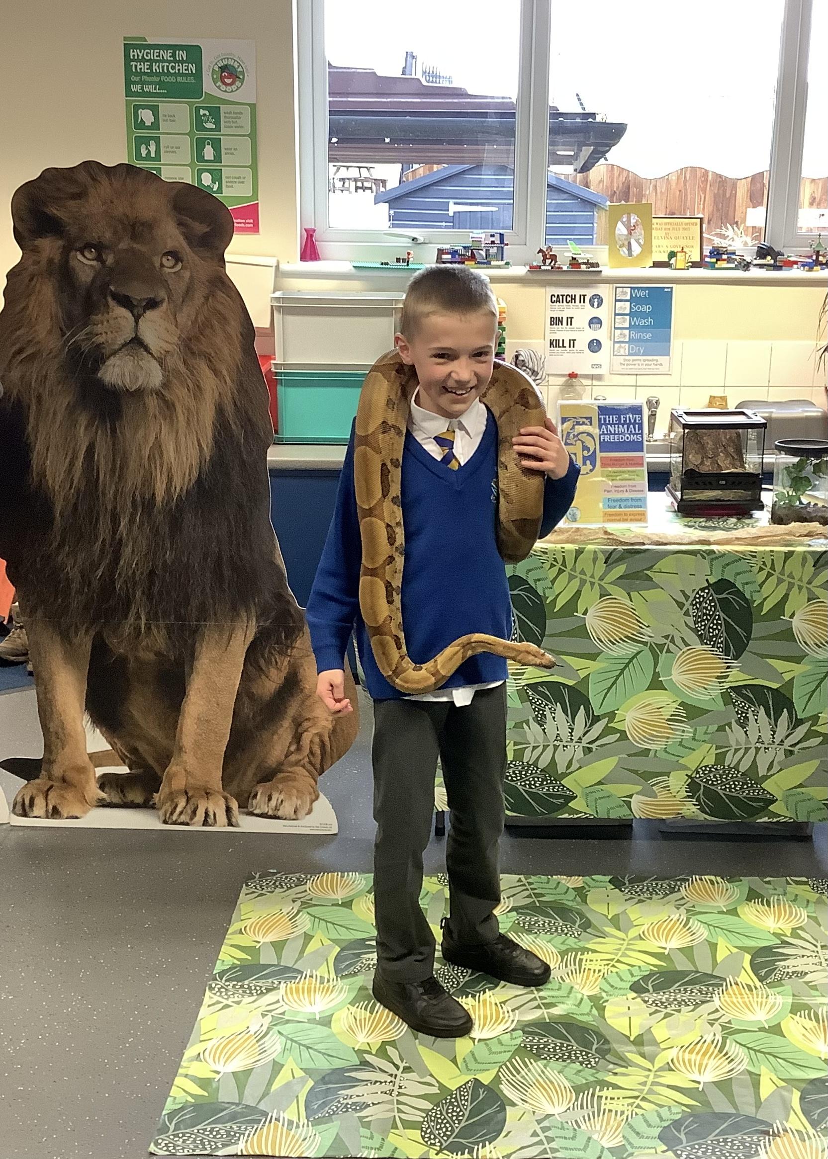 Today, Year 6 took a walk on the wild side with Pet Encounter! Siobhan brought in a collection of exotic creatures for the children to meet: an African grey parrot, a chameleon, a boa constrictor, a tenrec (which is actually more closely related to an elephant than a hedgehog!), and everybody’s favourite - a meerkat. We learnt how these animals are adapted to their environments and what their diets consist of. Look how brave some of the children are as they casually pose with a giant snake wrapped around their shoulders!