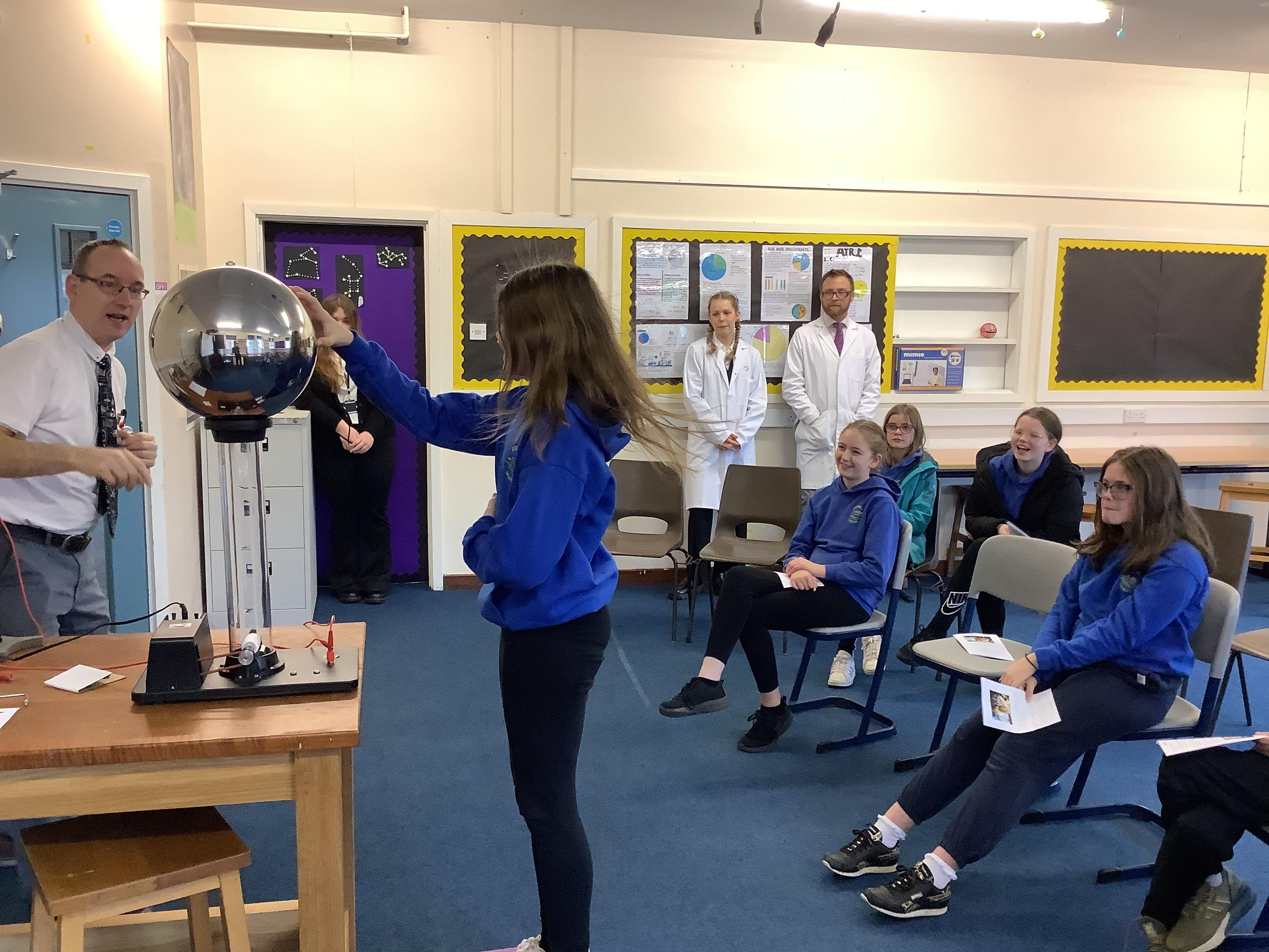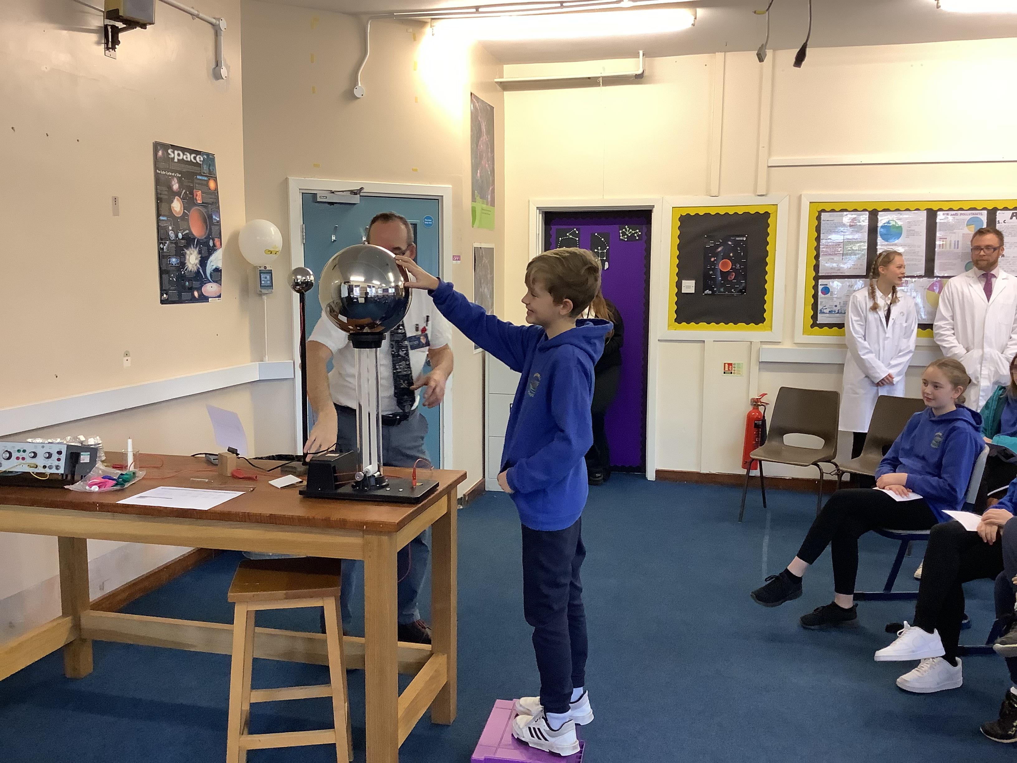 Today, Year 6 were invited to a science fair at St Bees School. Teachers and Sixth Form students set up a variety of hands-on experiments that the children could take part in. There were demonstrations in biology, chemistry and physics. As you can see, it was a hair-raising experience with plenty of flashes, bangs and pops - a great time was had by all!
