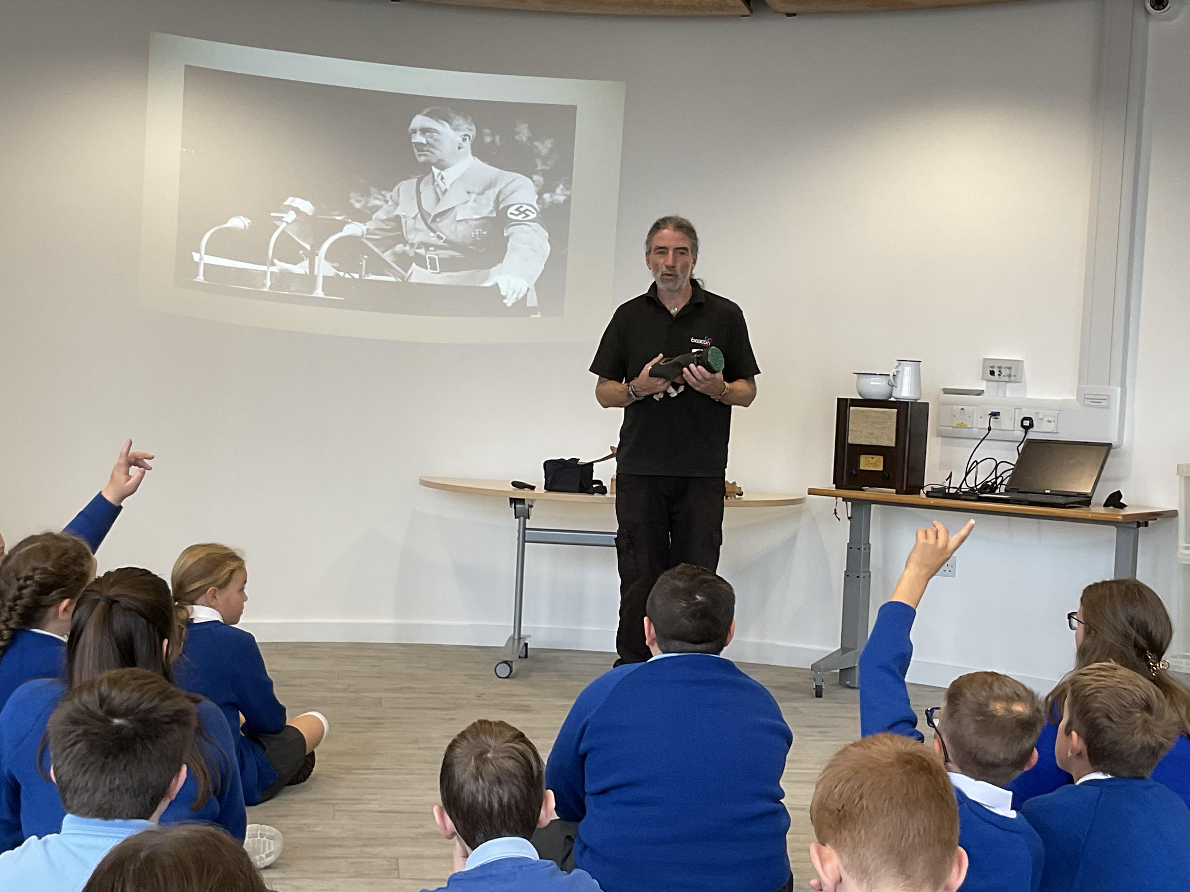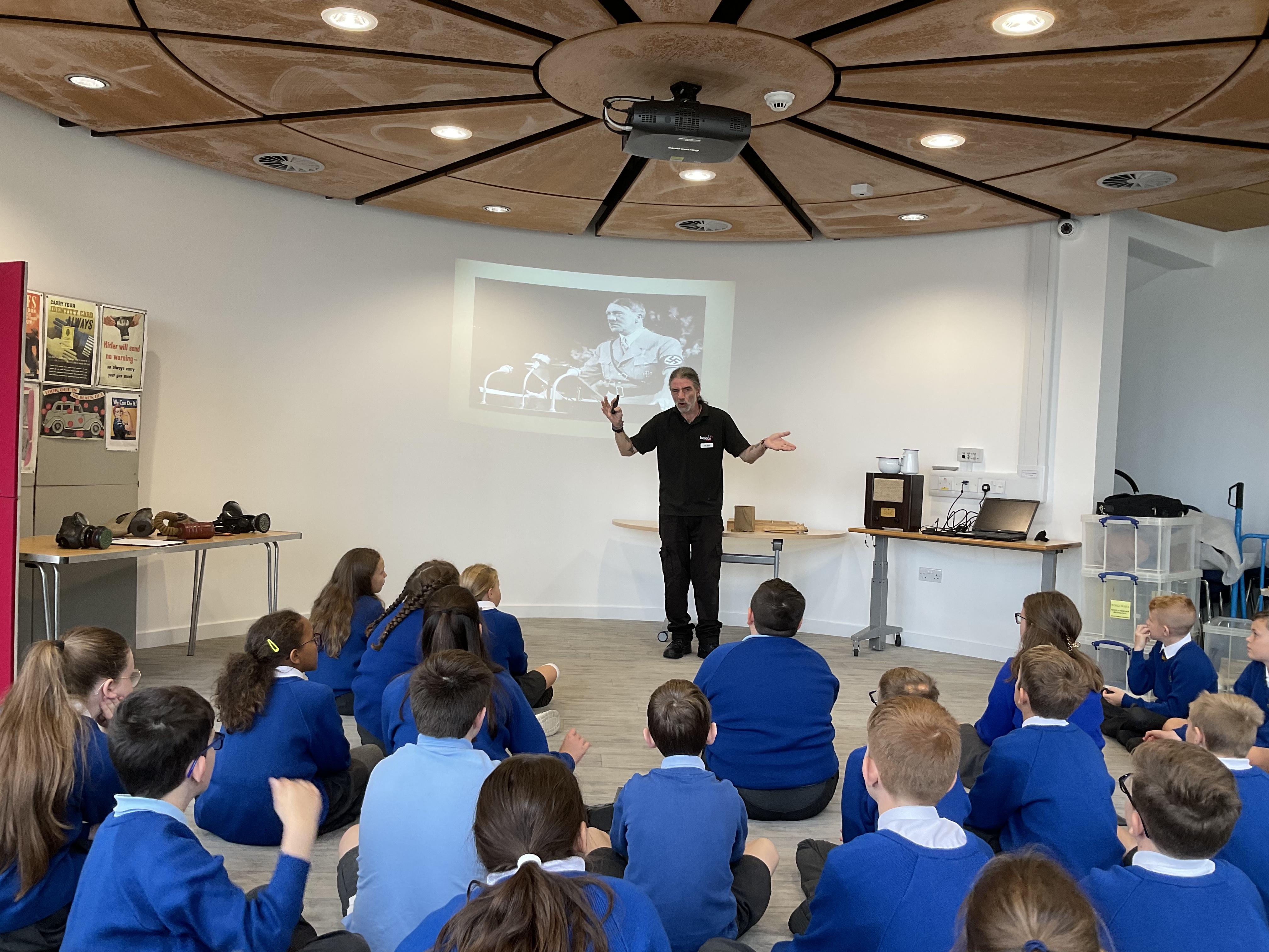We visited the Beacon to take part in their 'Keep the Home Fires Burning' workshop. Alan talked to the children about the causes of World War 2 and they explored topics like blackout, evacuation, rationing and the Blitz. The children learned lots of new information and got to handle artefacts and historical sources.