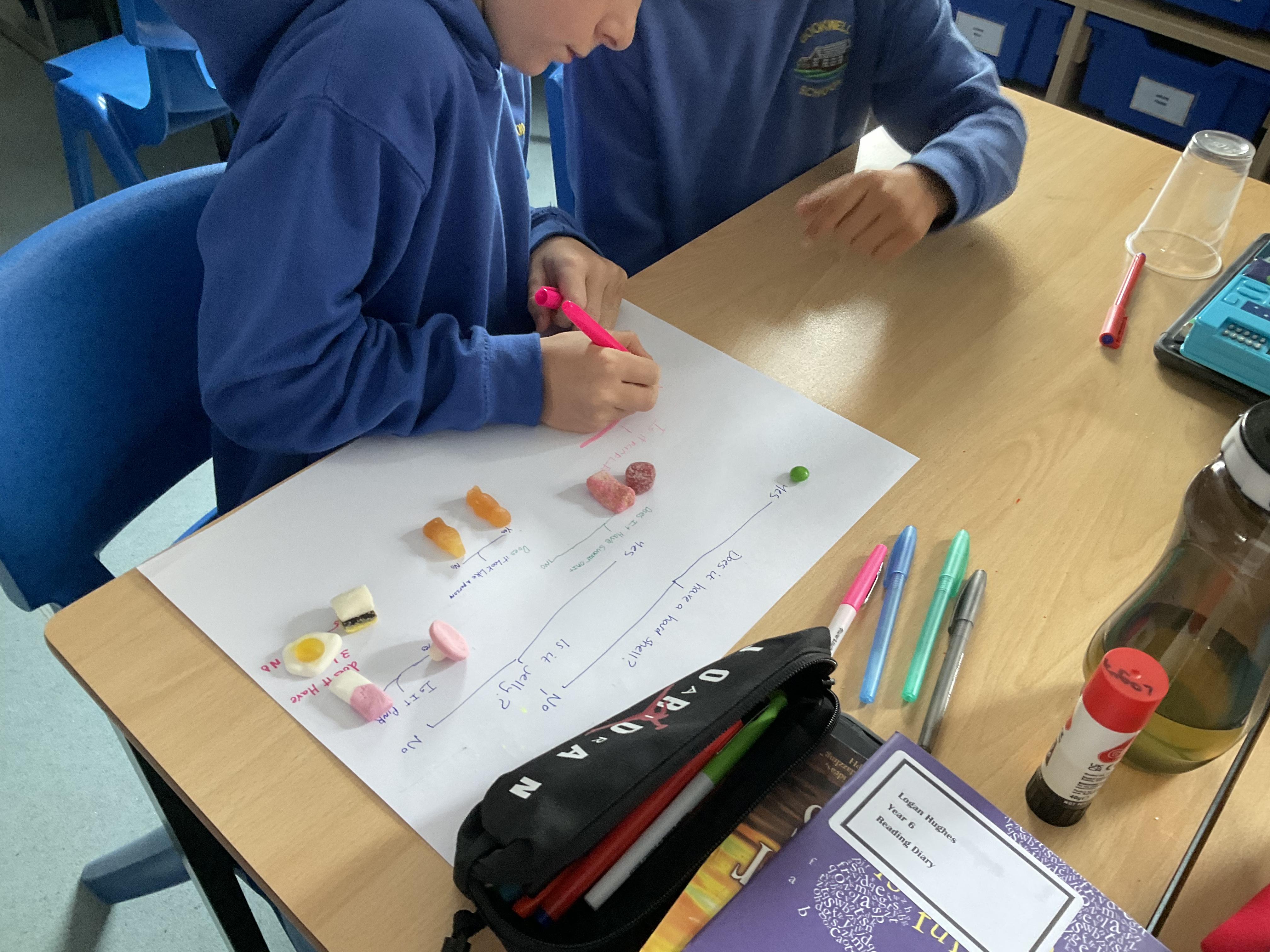 We started off our classification topic with some sweetie sorting. The children had to design question keys that would separate the sweets. They did a super job and got to eat them at the end!