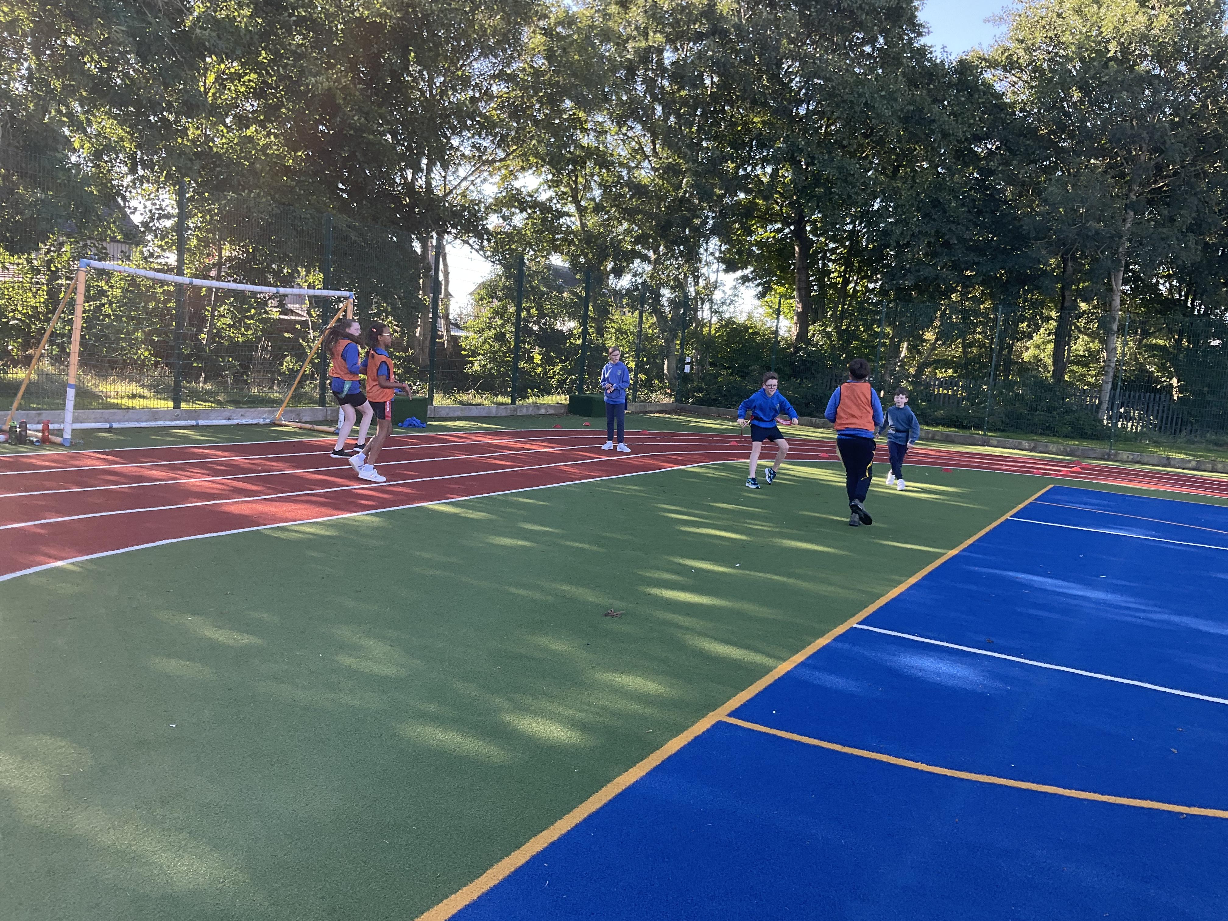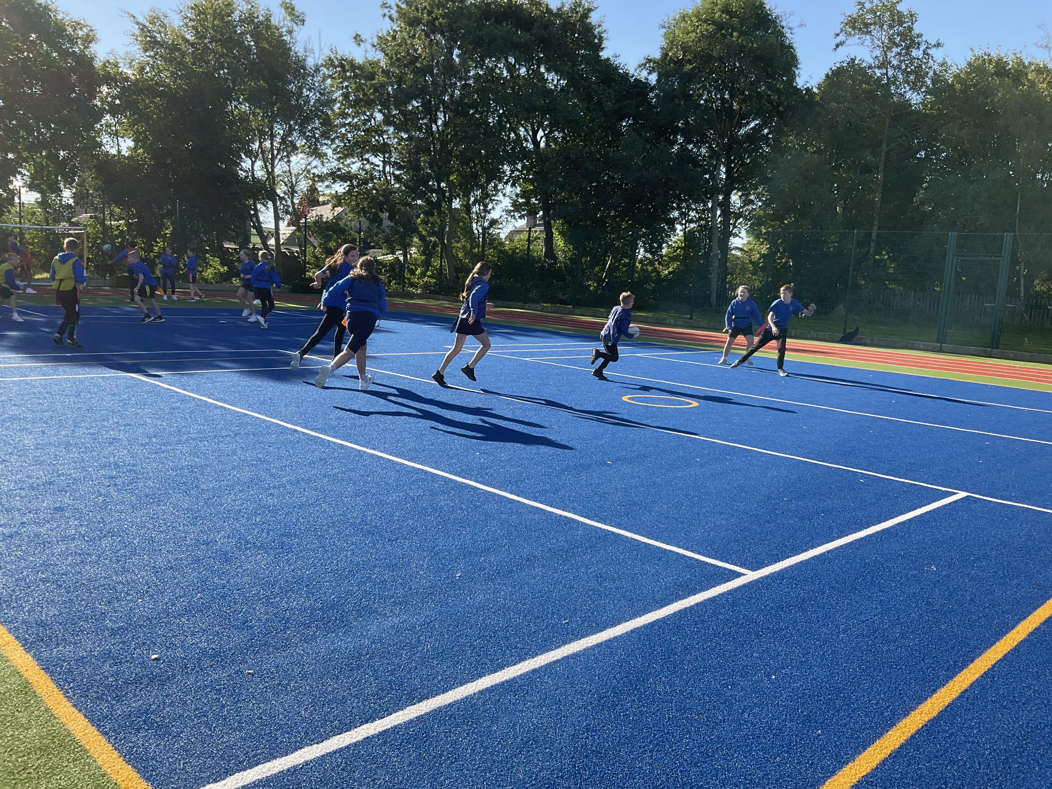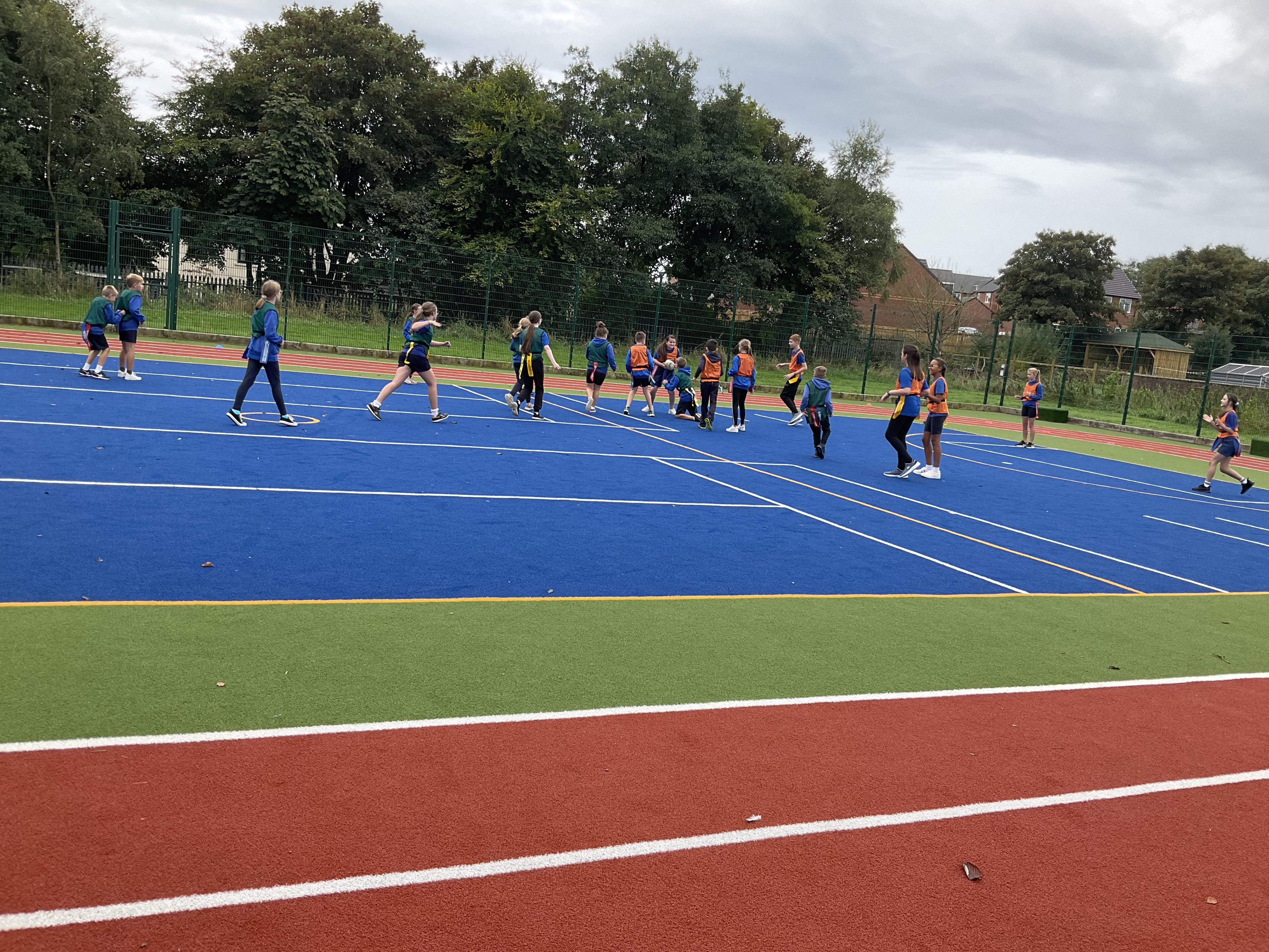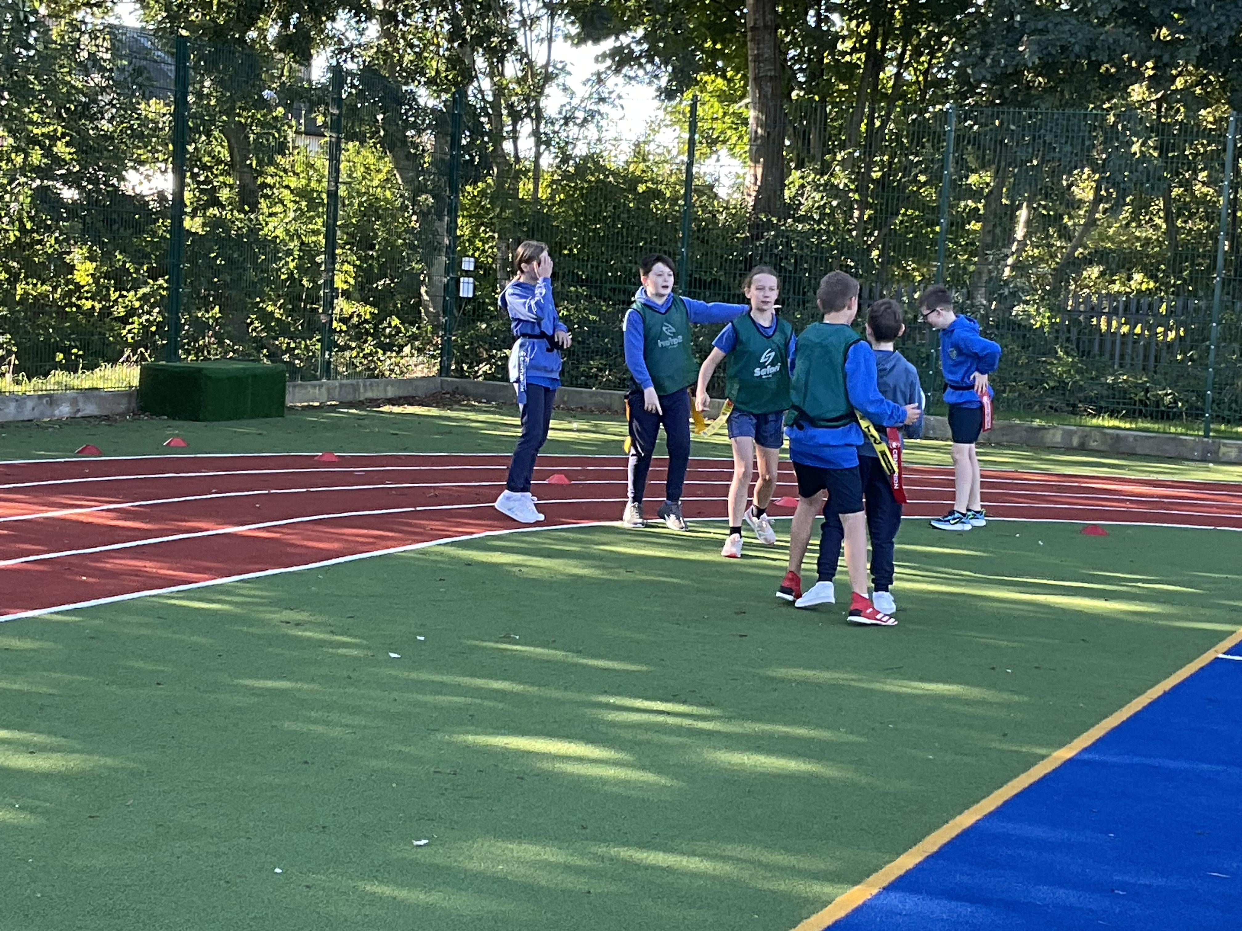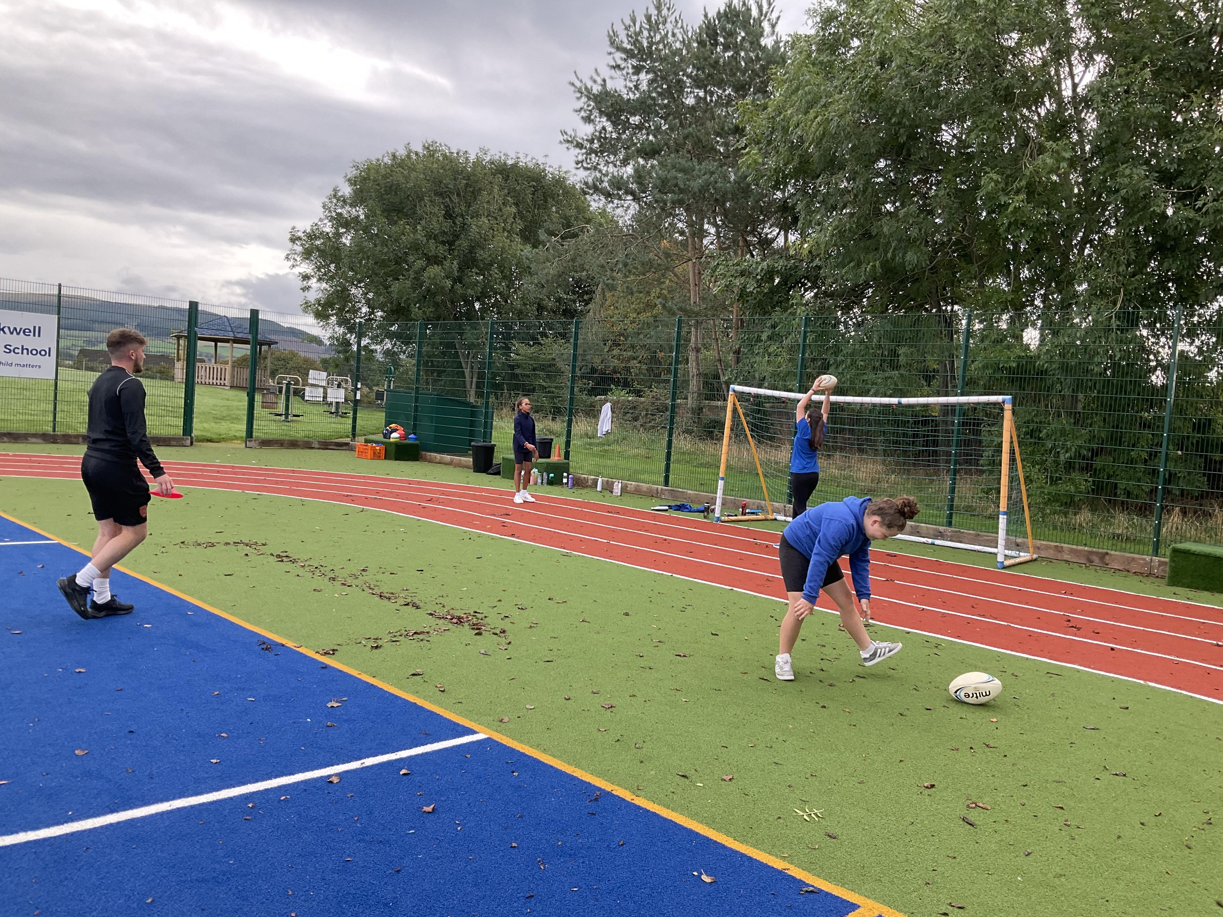 In PE, the children are learning the skills and rules of tag rugby. They have been doing lots of drills involving carrying and passing the ball properly, and practising their footwork.