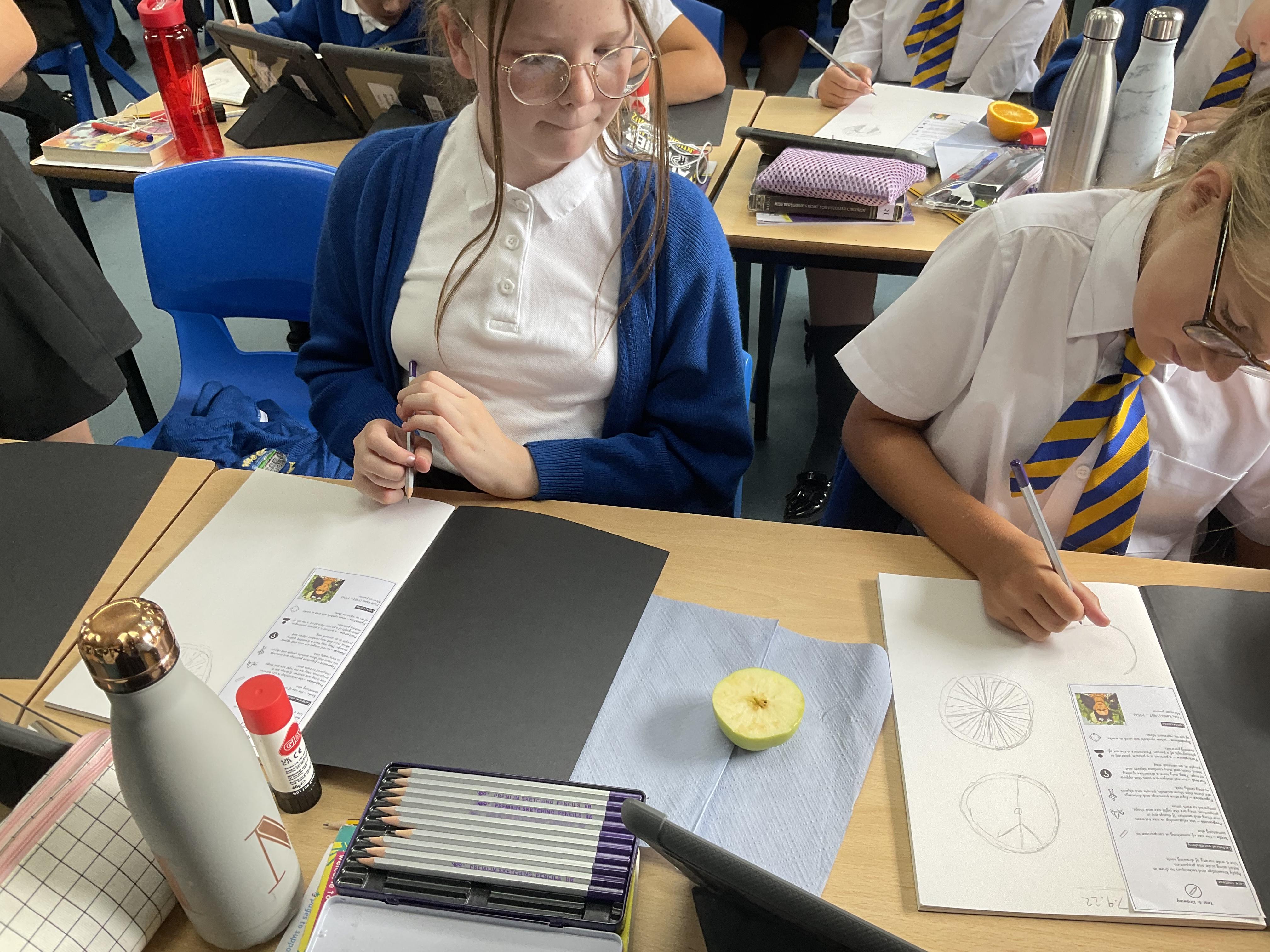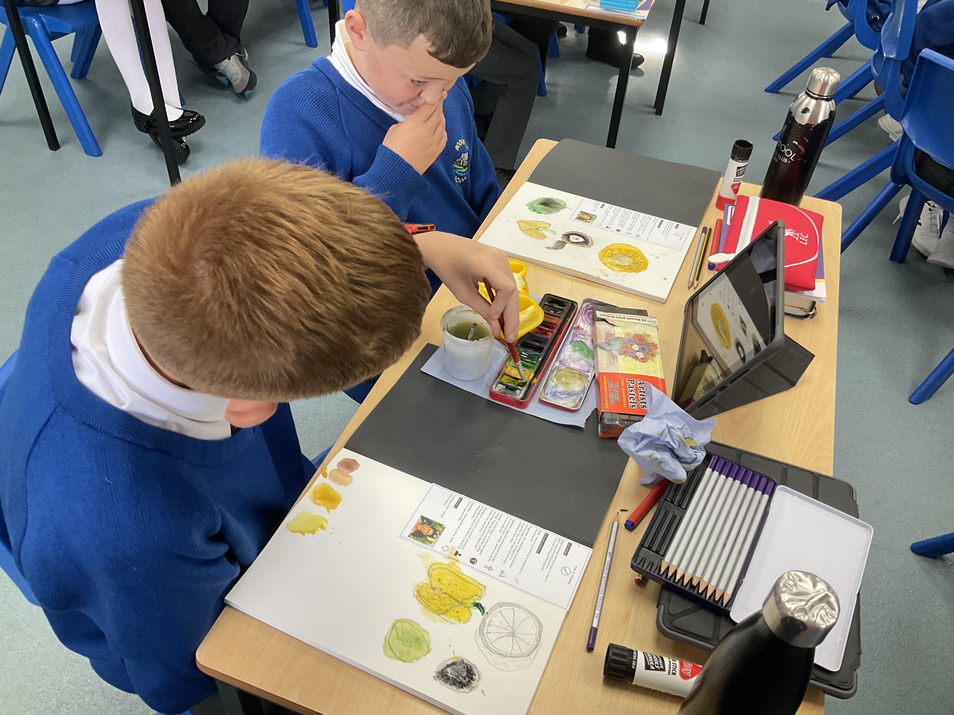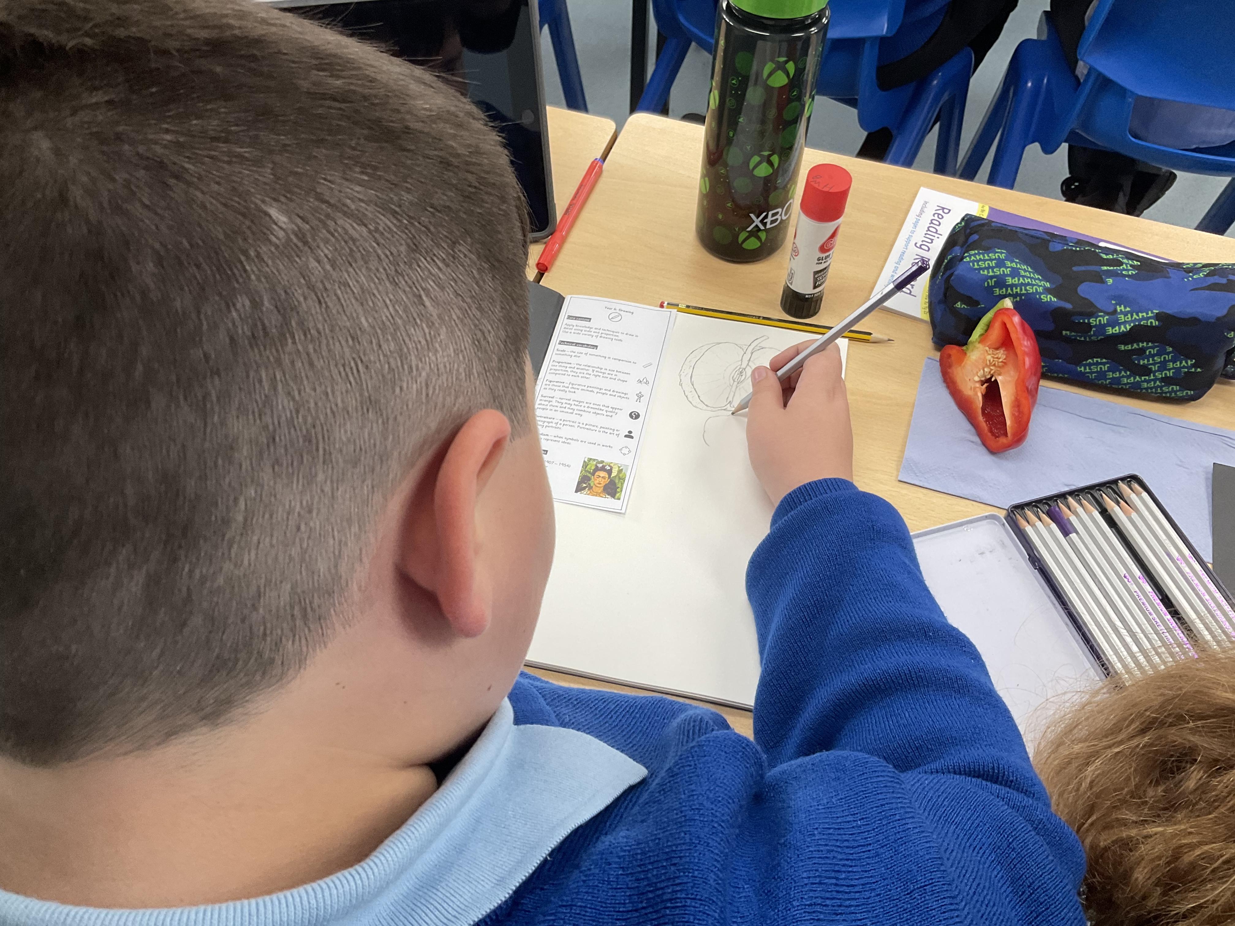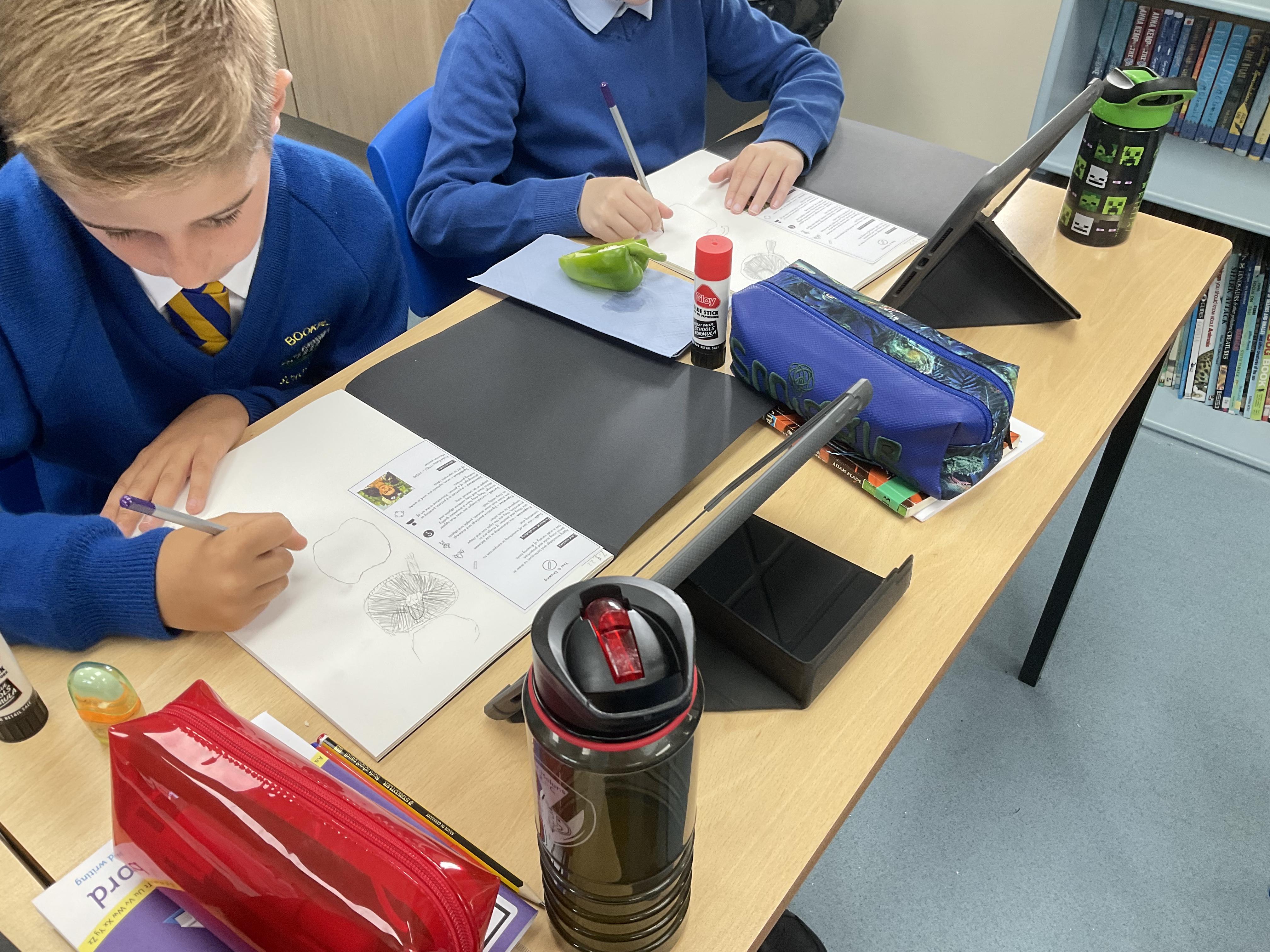Our Art focus this half-term is drawing. The children drew fruit and vegetables and then added colour with a range of media.