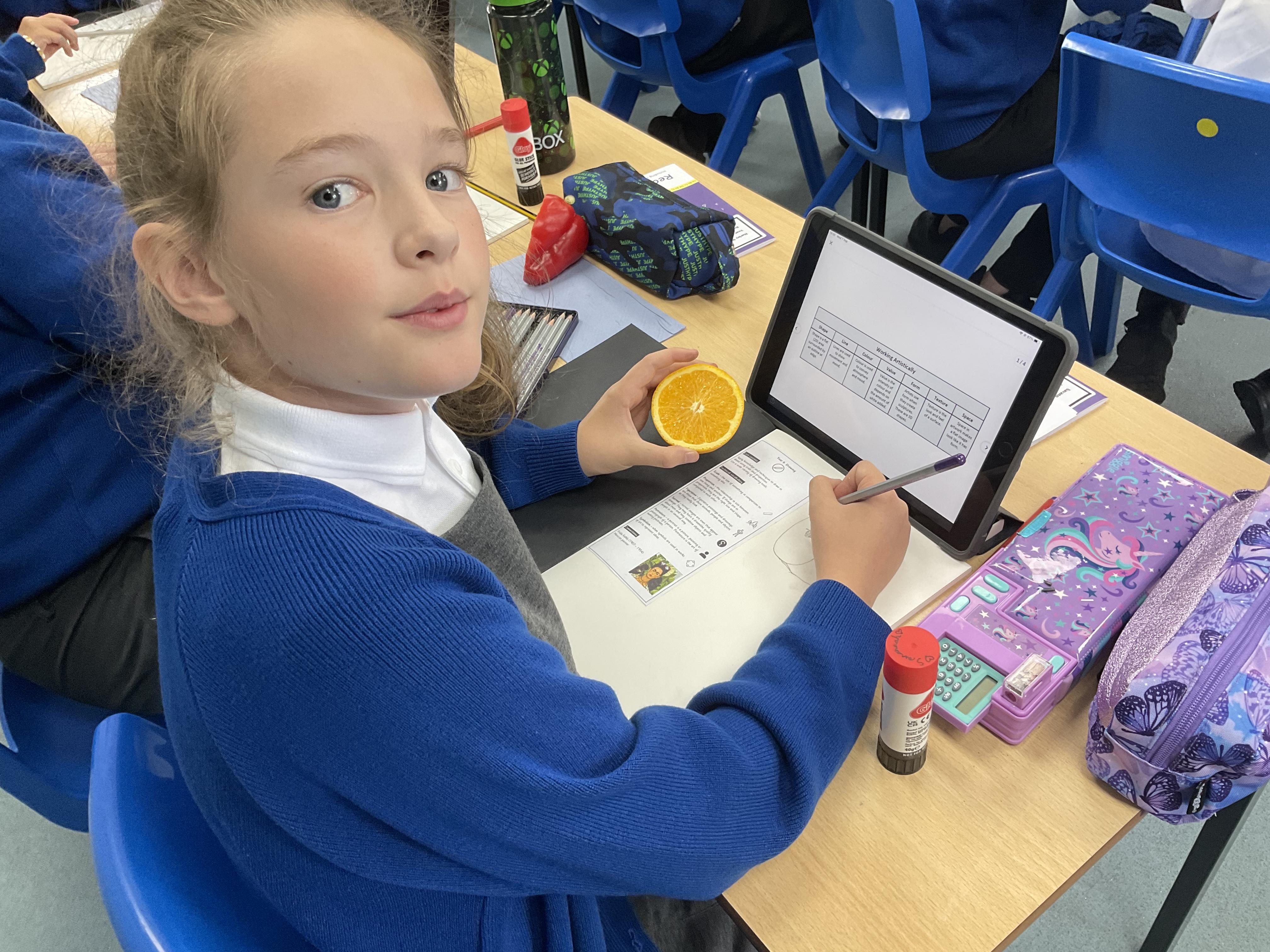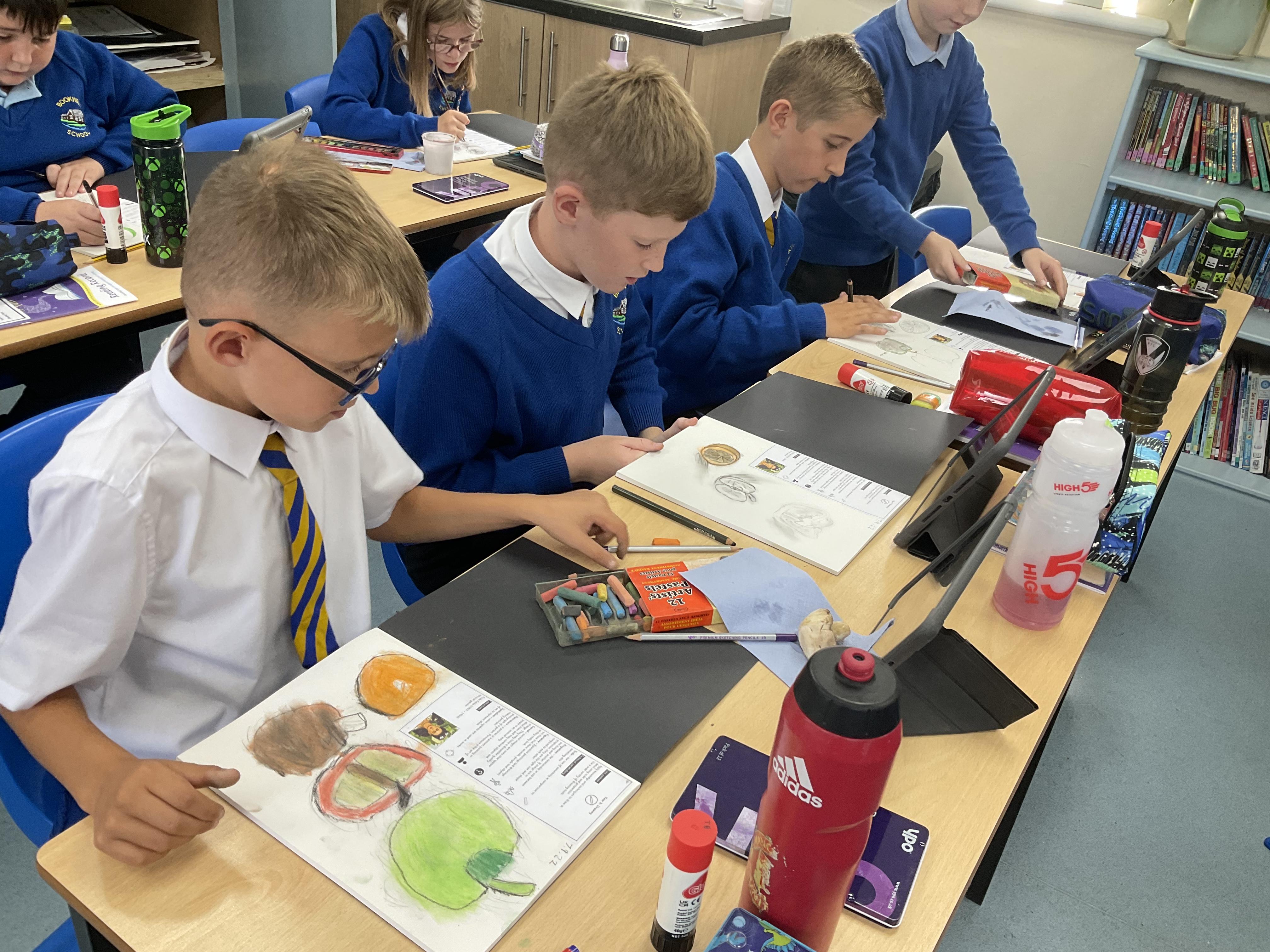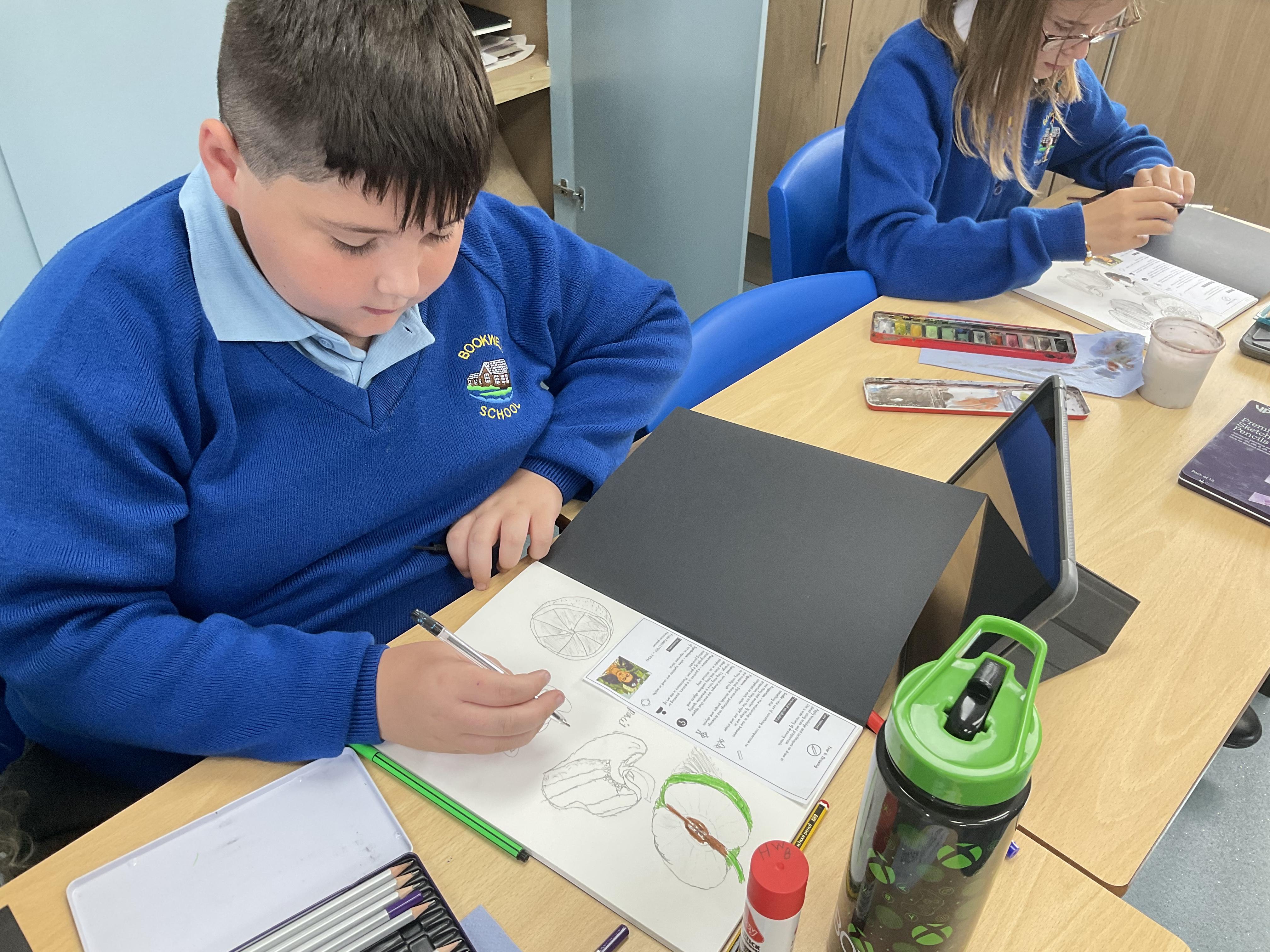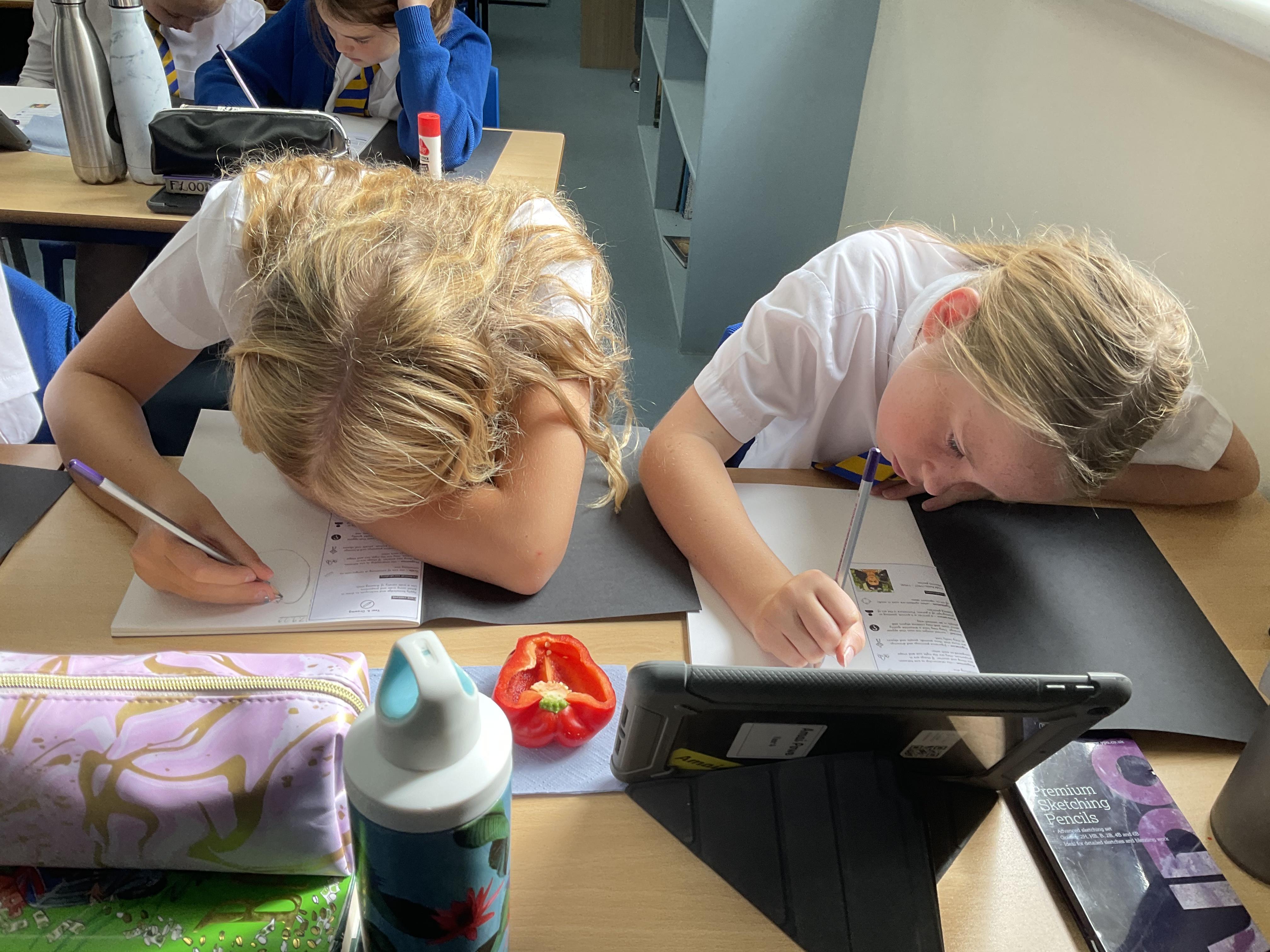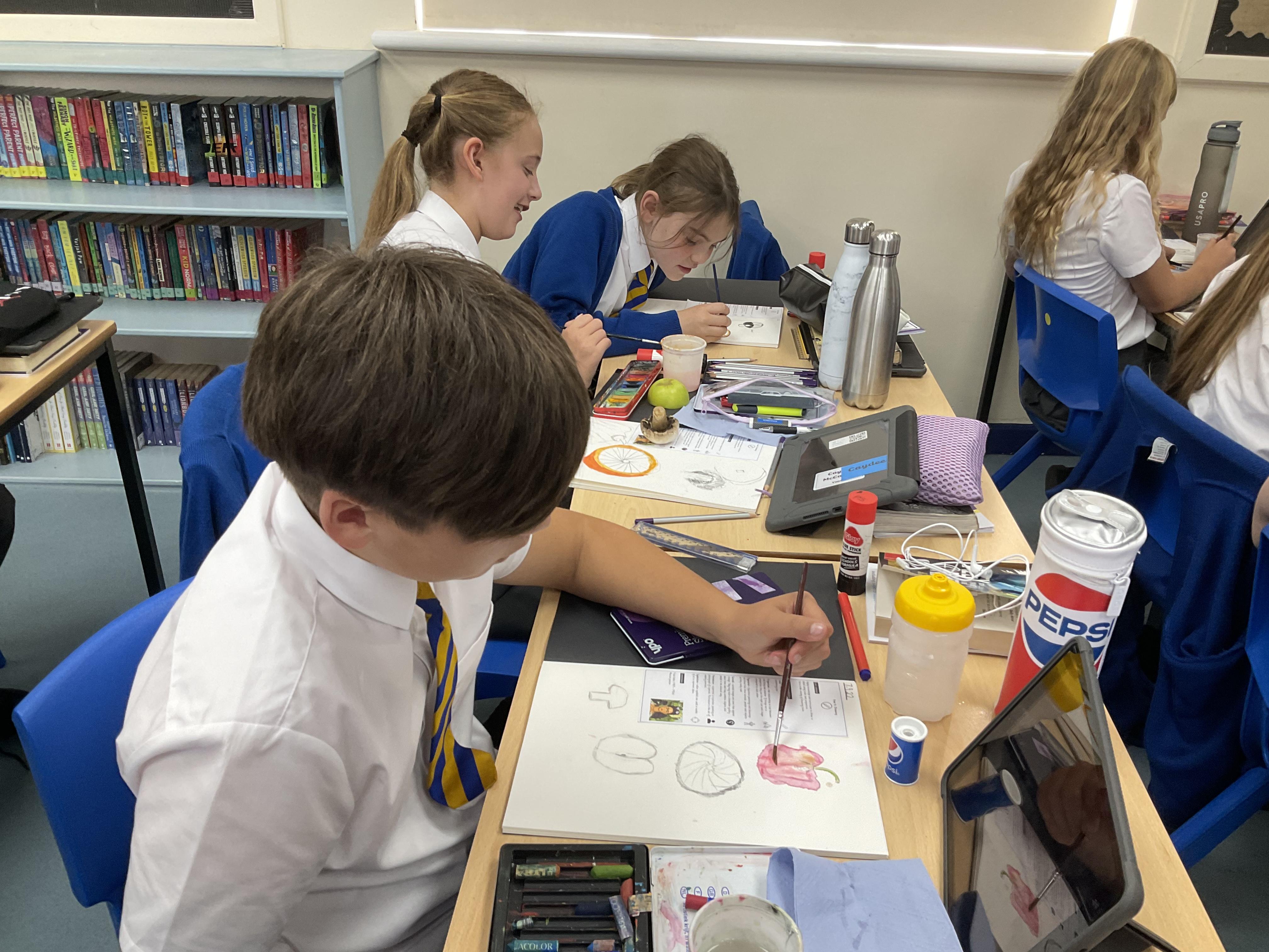 Our Art focus this half-term is drawing. The children drew fruit and vegetables and then added colour with a range of media.