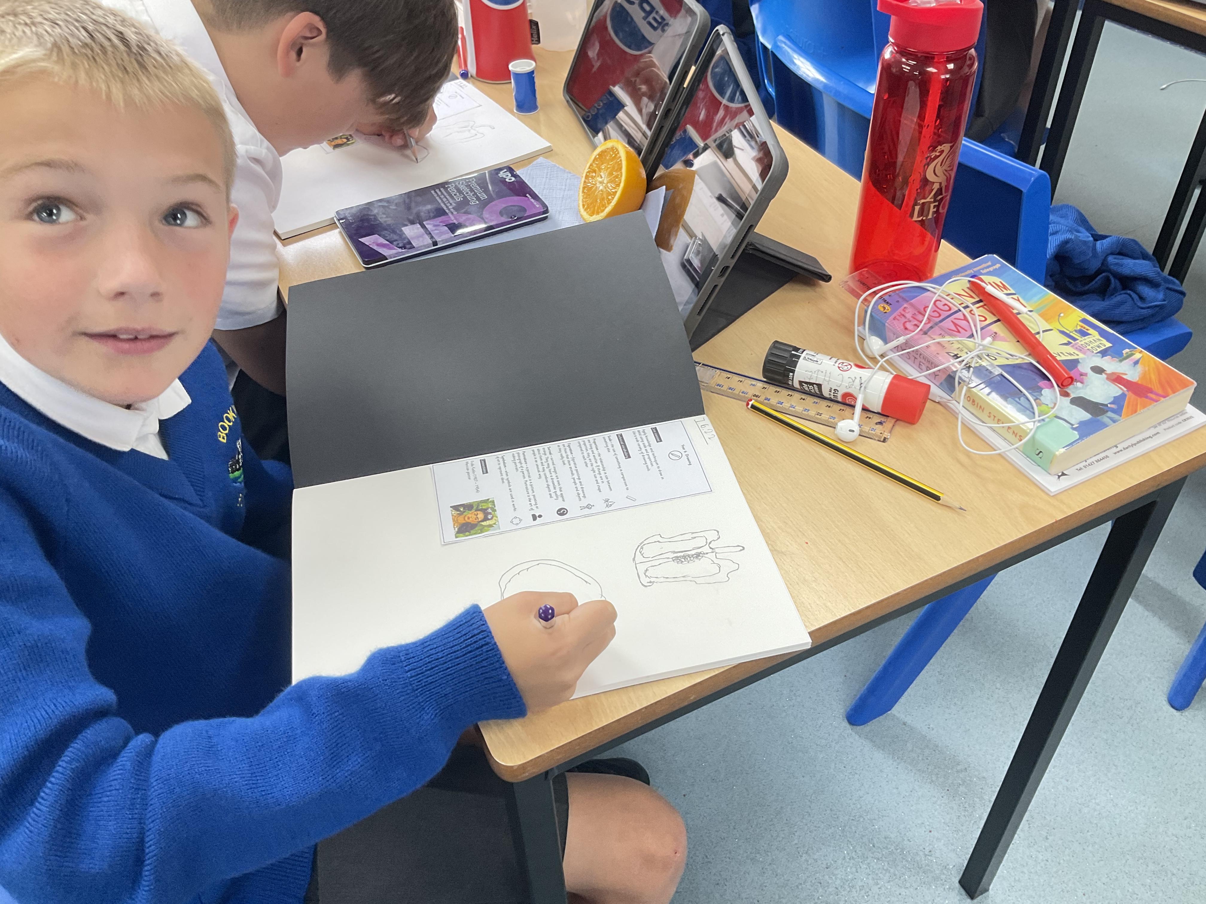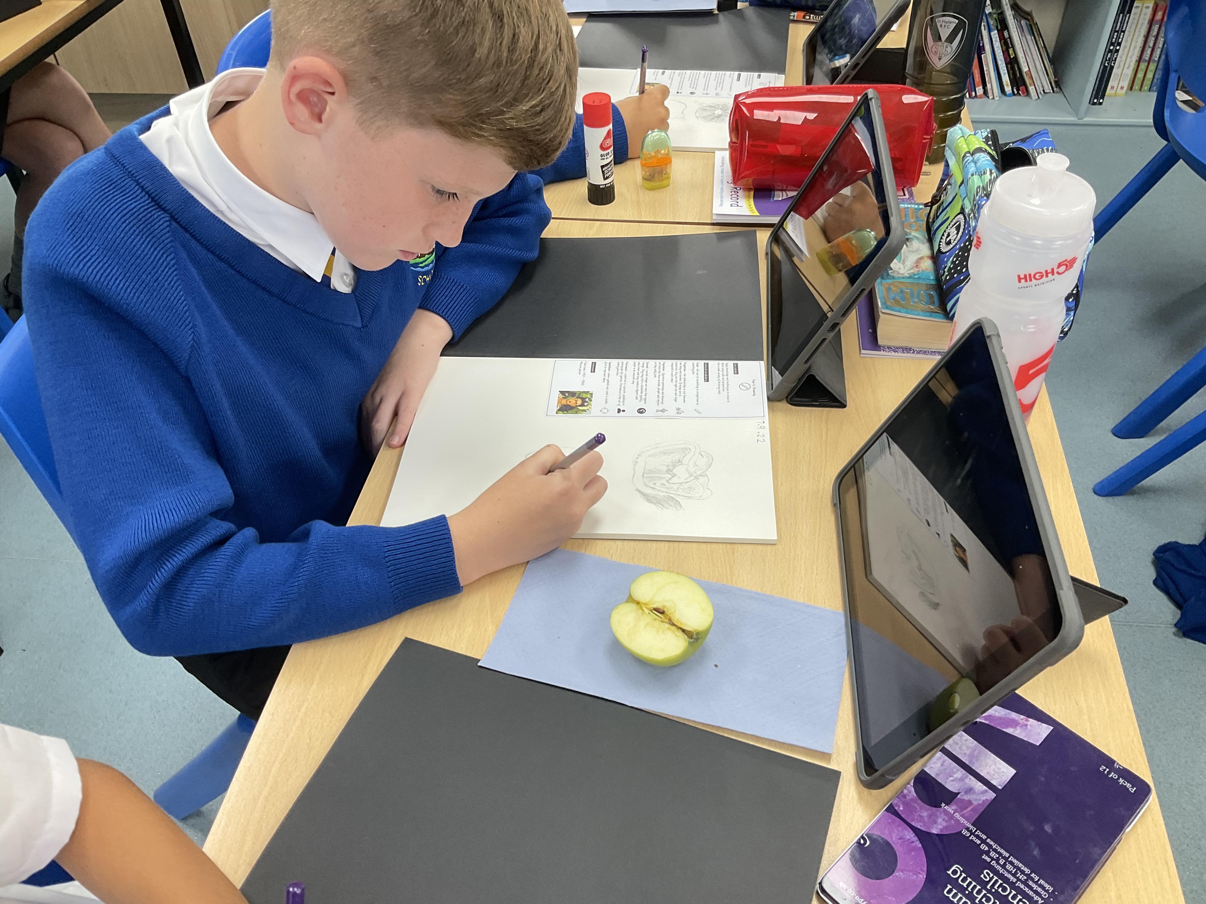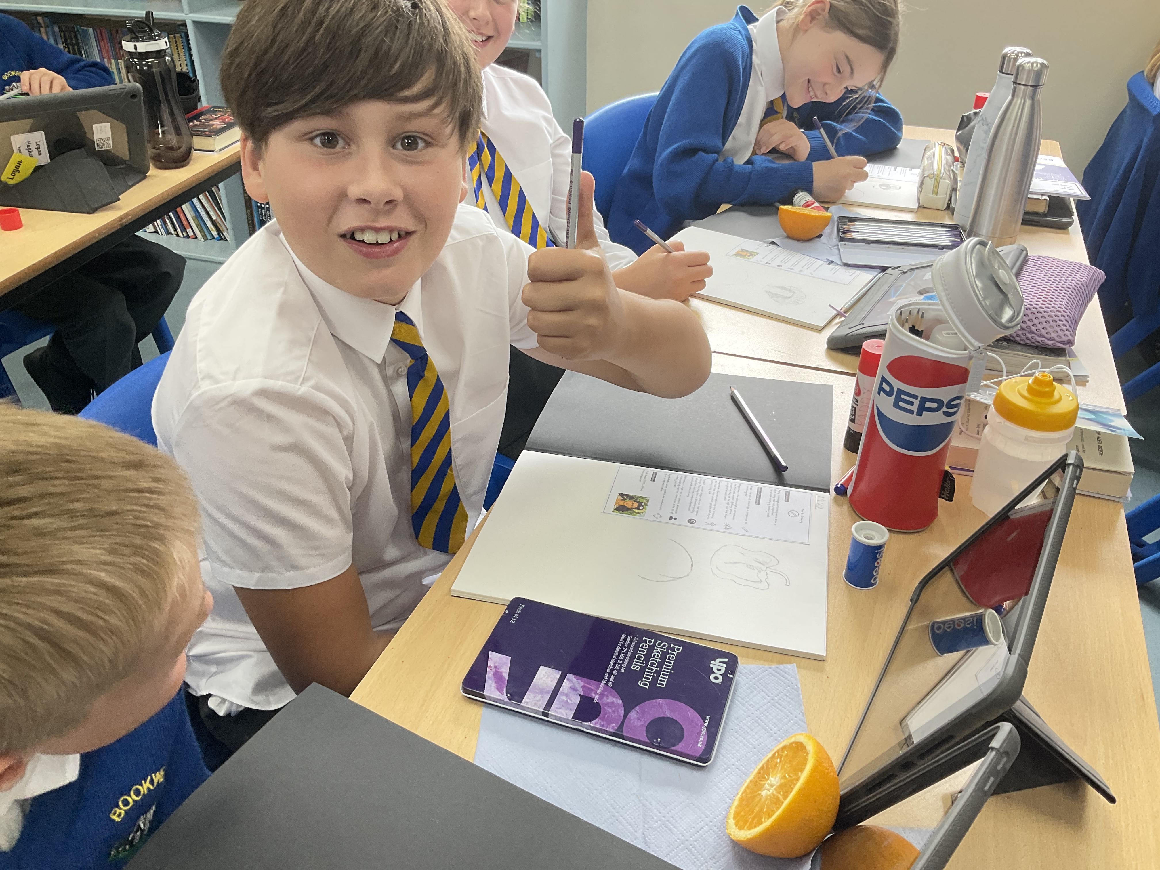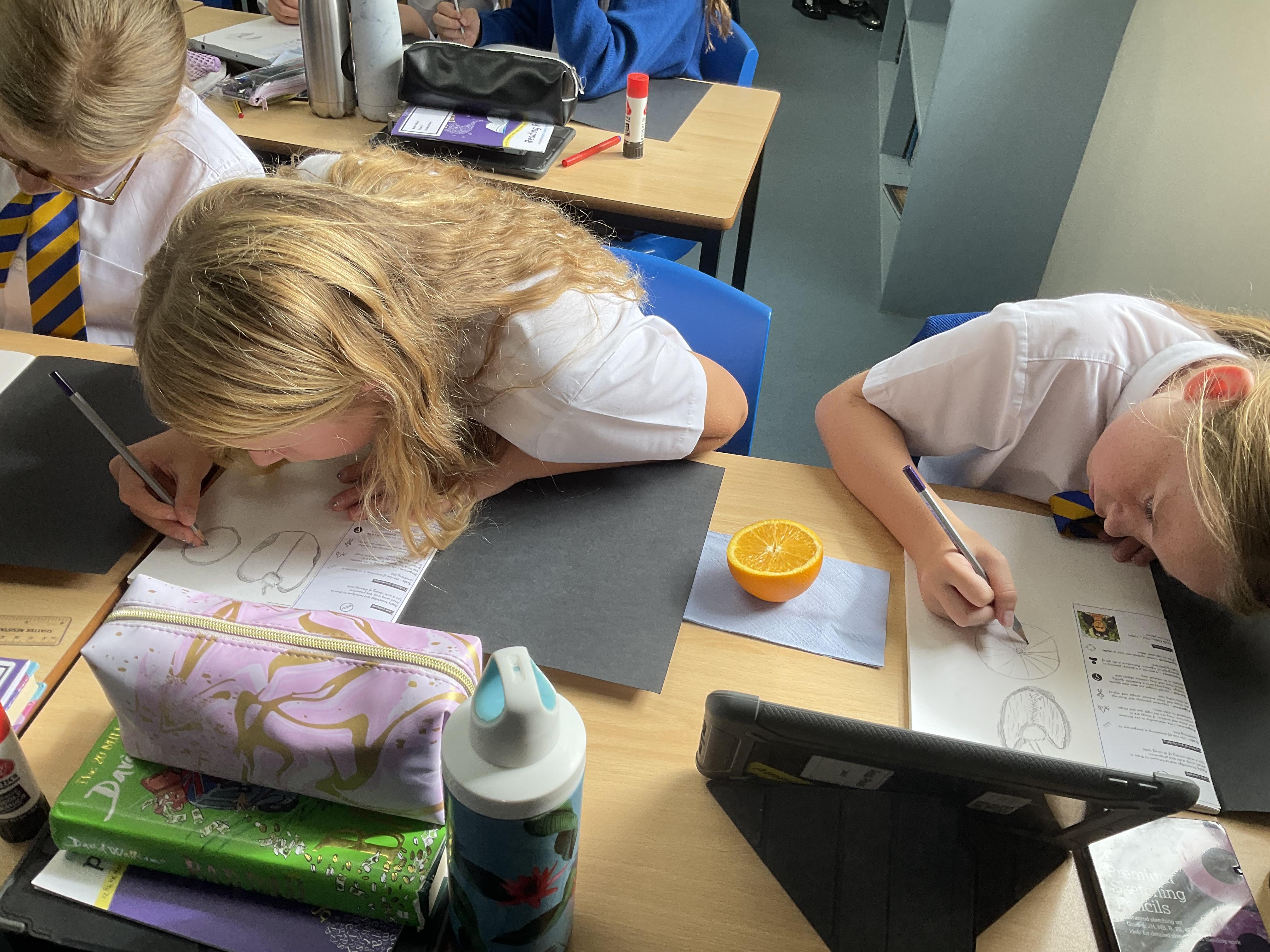 Our Art focus this half-term is drawing. The children drew fruit and vegetables and then added colour with a range of media.